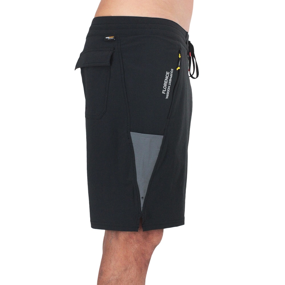 A Bermuda Florence Marine X Cordura Utility Black foi produzida em tecido CORDURA® 4Way Stretch 64%Cordura, 26% Nylon e 10% Elastano. Cós com cordão 360 para segurança extra e melhor ajuste. Tecido com tratamento C0 DWR repele a água sem expelir fluorocarbonetos nocivos, bolso lateral com zíper para fácil armazenamento, cordão utilitário amarelo serve como porta-chaves/óculos de sol ou para pendurar sua roupa para secar.