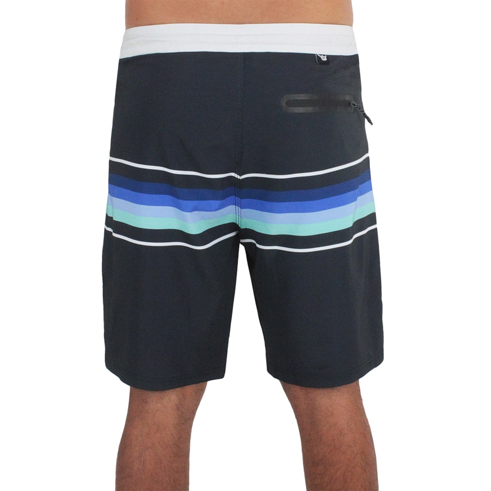 A Bermuda Hang Loose Sky Stripe Black é produzida com técido 4Way Stretch. Estampa full print em sublimação, fechamento EZ fly com cordão interno para um ajuste perfeito, bolso traseiro com fechamento em ziper. Tecido 93% Poliéster e 07% Elastano, comprimento médio de 20 polegadas.