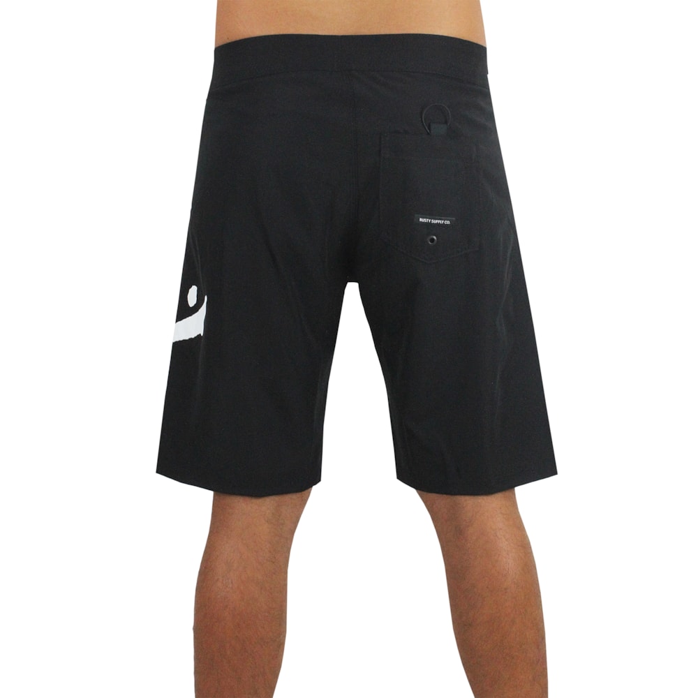 A Bermuda Rusty Competition Preta é produzida com técido 4Way Stretch. Cós com fechamento EZ fly para um ajuste perfeito, bolso traseiro com fechamento em velcro. O tradicional logo Rusty R Dot é apresentado em silk na perna. Tecido 93% Poliéster e 07% Elastano, comprimento médio de 21 polegadas.