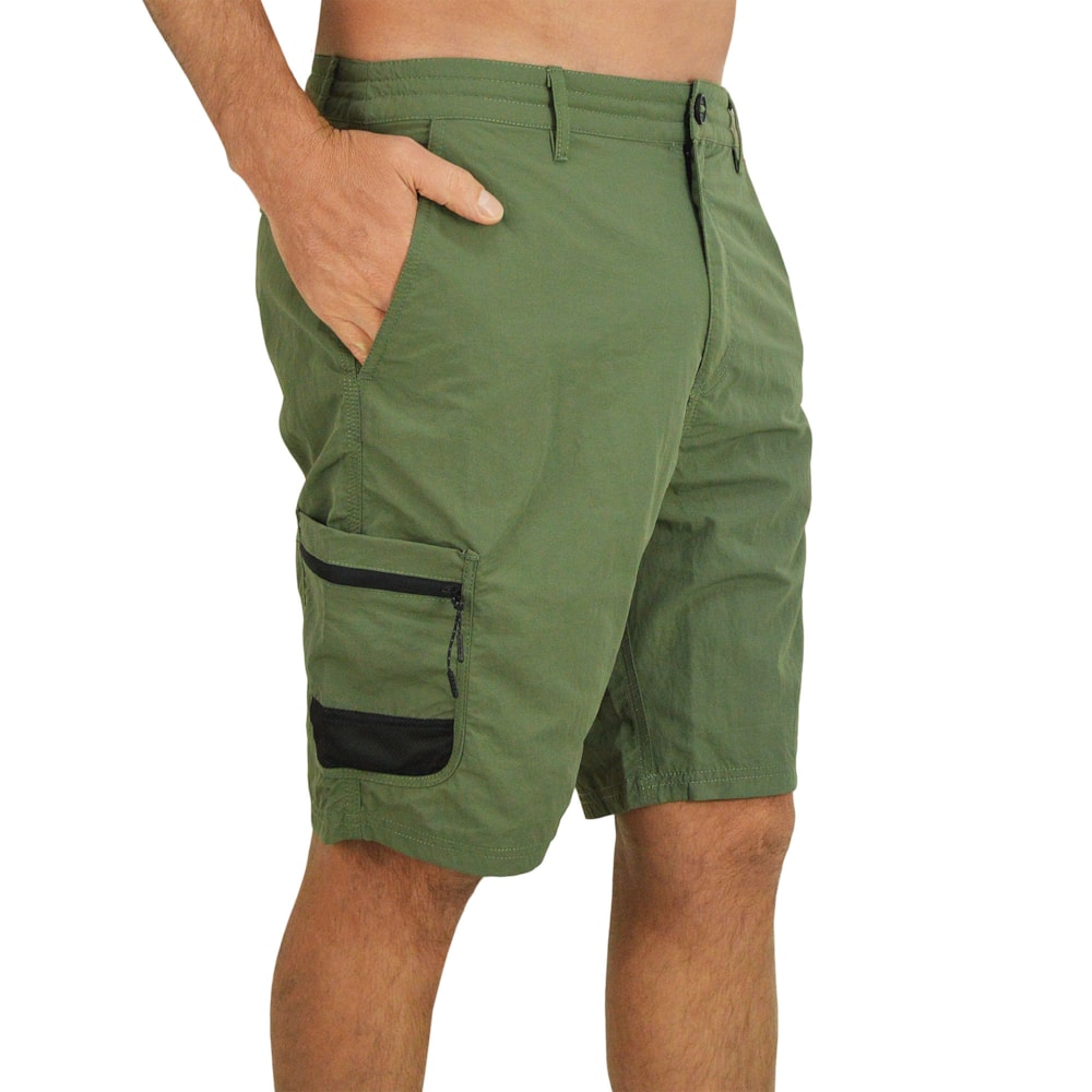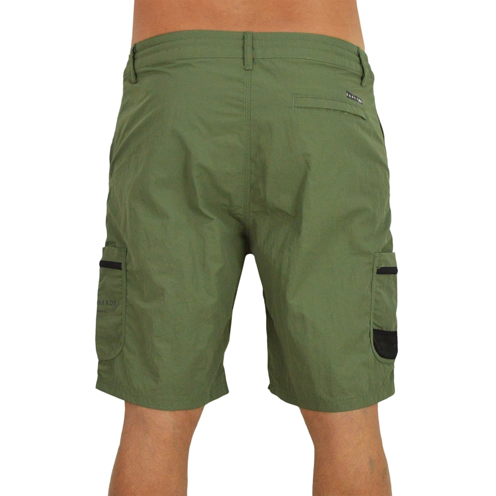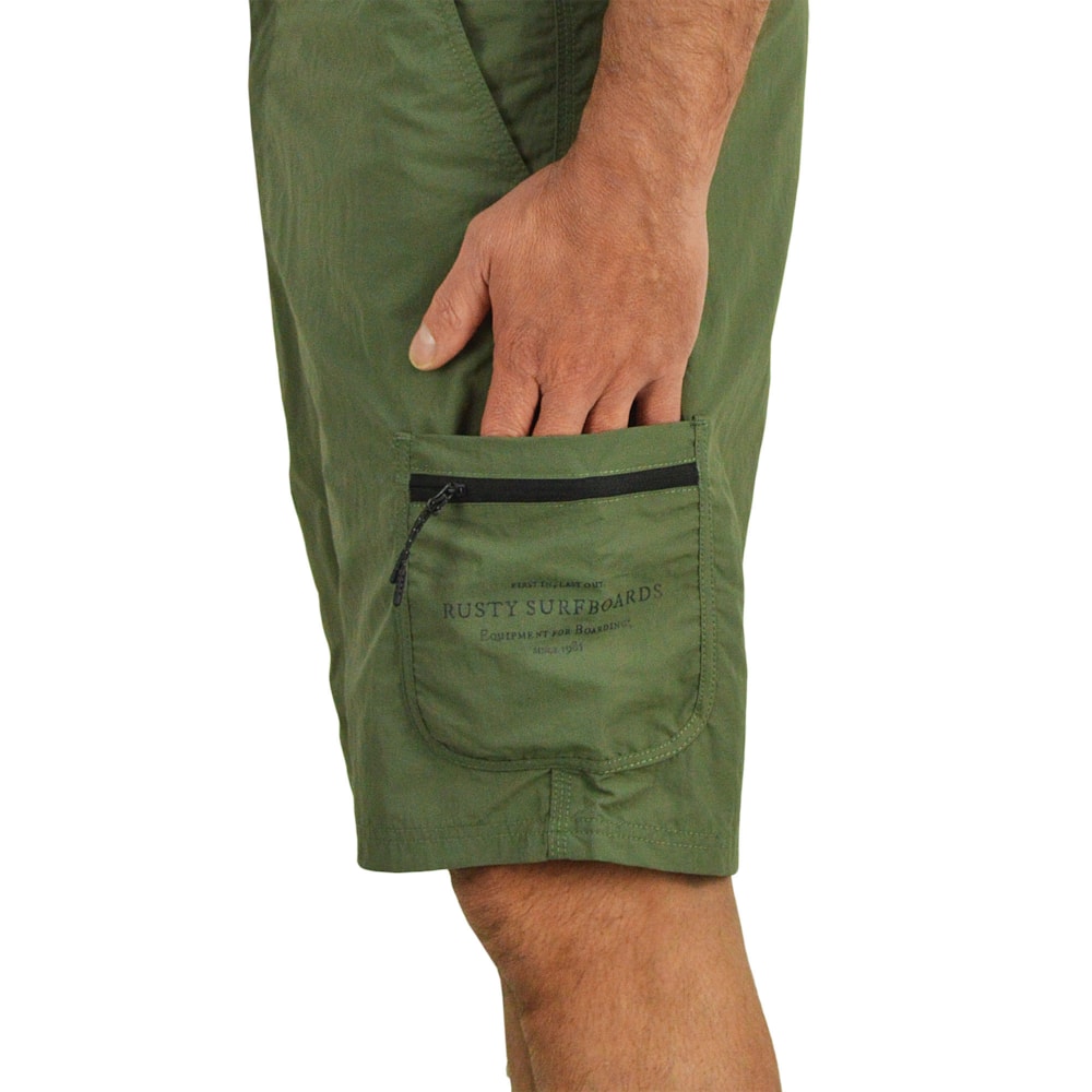 A Bermuda Rusty Híbrida Inca Olive Green foi produzida para ser usada no dia à dia e também na água. Produzida com tecido leve e de secagem rápida 100% Poliamida, apresenta bolsos frontais com corte faca, bolso traseiro embutido e os bolsos laterais estilo cargo. Cós com fechamento em botão, passante para cinto e cordão interno para um melhor ajuste. O logo Rusty é apresentado em etiqueta personalizada no bolso traseiro e em silk na perna.
