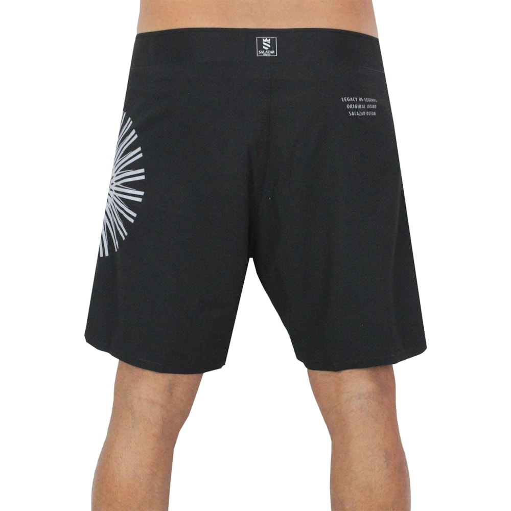 A Bermuda Salazar Ocean Performance Stretch Radial Preta é produzida com tecido ultra leve e de secagem rápida, 18'' polegadas de comprimento, modelagem performance sem costura nas laterias e com recuo na barra para maior mobilidade. Cós anatômico com viés, cordão aderente para um ajuste perfeito e bolso frontal embutido na horizontal. Acabamento selado por todo o board shorts para maior conforto e leveza durante o uso. Grafismo exclusivo com referência havaiana.