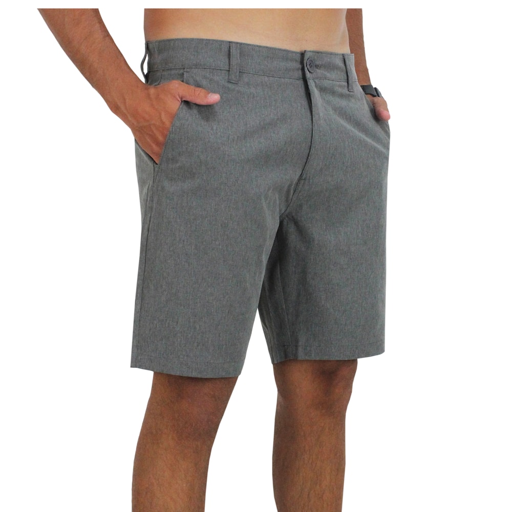 A Bermuda Surf Alive Híbrida Cinza é produzida com técido 4Way Stretch 92% Poliéster e 08% Elastano. Cós com fechamento em botão, bolsos frontais com corte faca e bolso traseiro embutido com fechamento em botão.