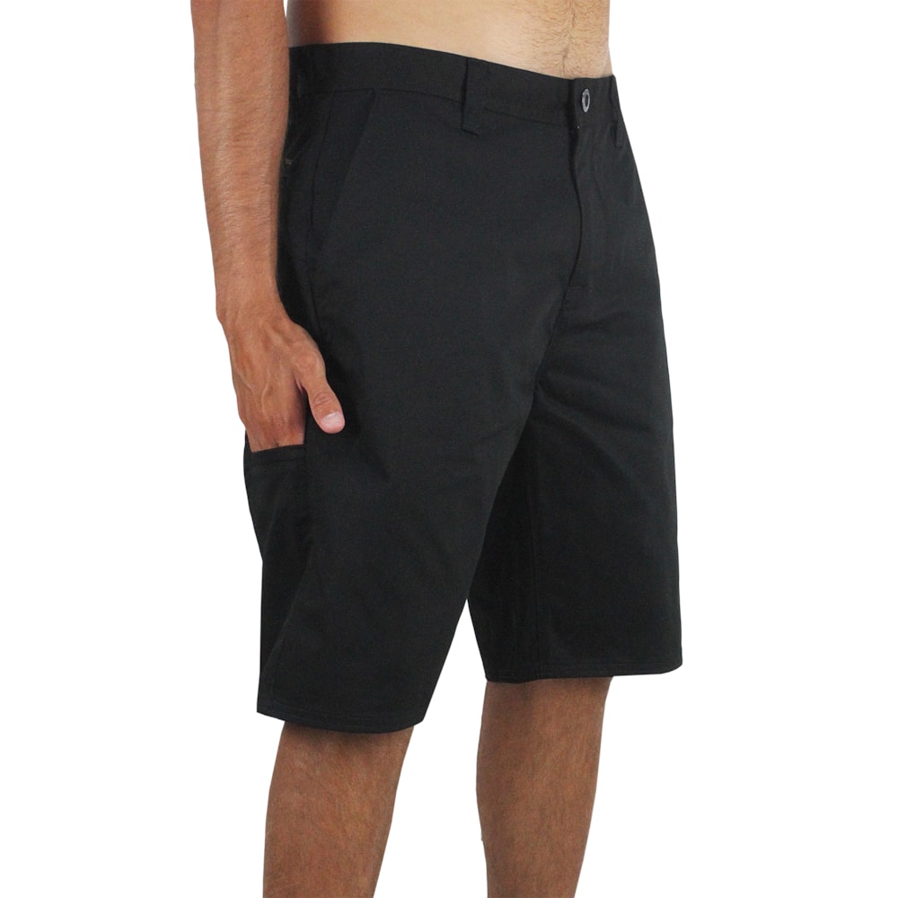 A Bermuda Volcom Frickin Chino Black é produzida em sarja 60% Algodão e 40% Poliéster, apresenta bolsos com corte chino style, parte traseira com recorte assimétrico.