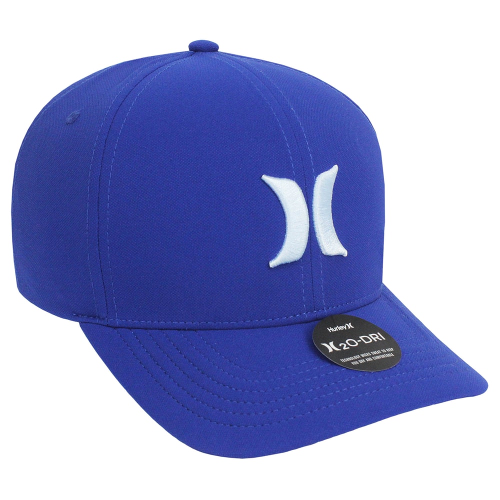 O Boné Hurley Icon Blue é produzido com tecido Hurley H2O-Dri, que absorve o suor para mantê-lo seco e confortável durante todo o dia Aba com curva estruturada e forração com faixa de expansão H2O-DRI. Logo Hurley Icon bordadono painel frontal.
