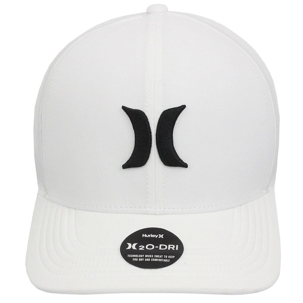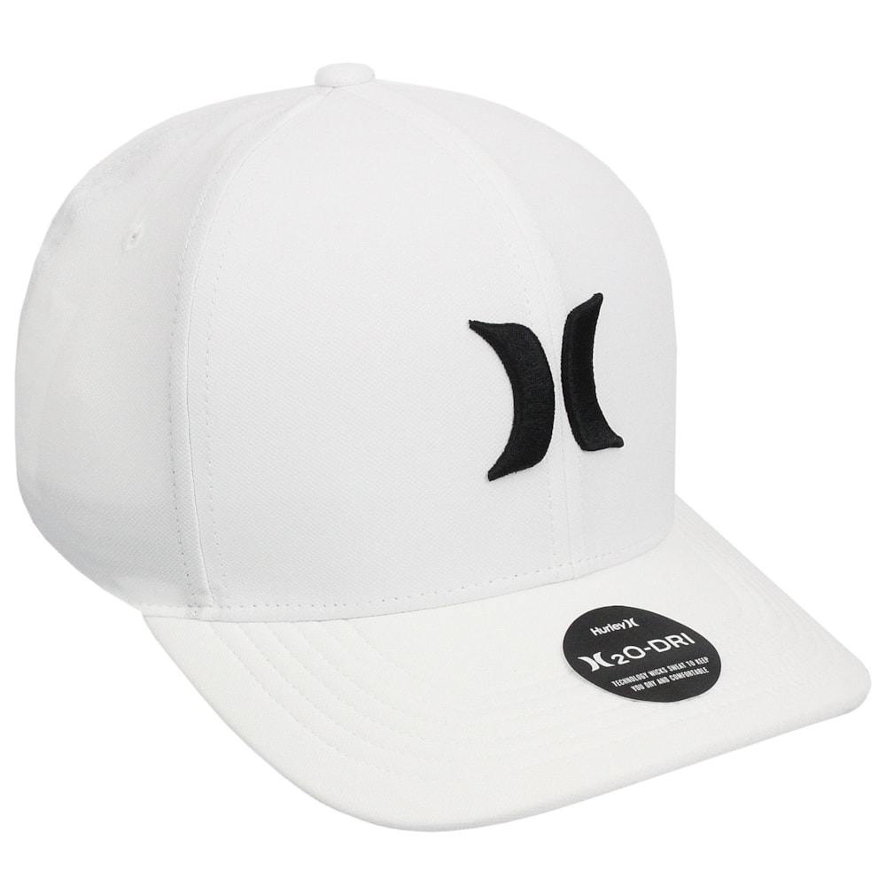 O Boné Hurley Icon Branco é produzido com tecido Hurley H2O-Dri, que absorve o suor para mantê-lo seco e confortável durante todo o dia Aba com curva estruturada e forração com faixa de expansão H2O-DRI. Logo Hurley Icon bordadono painel frontal.