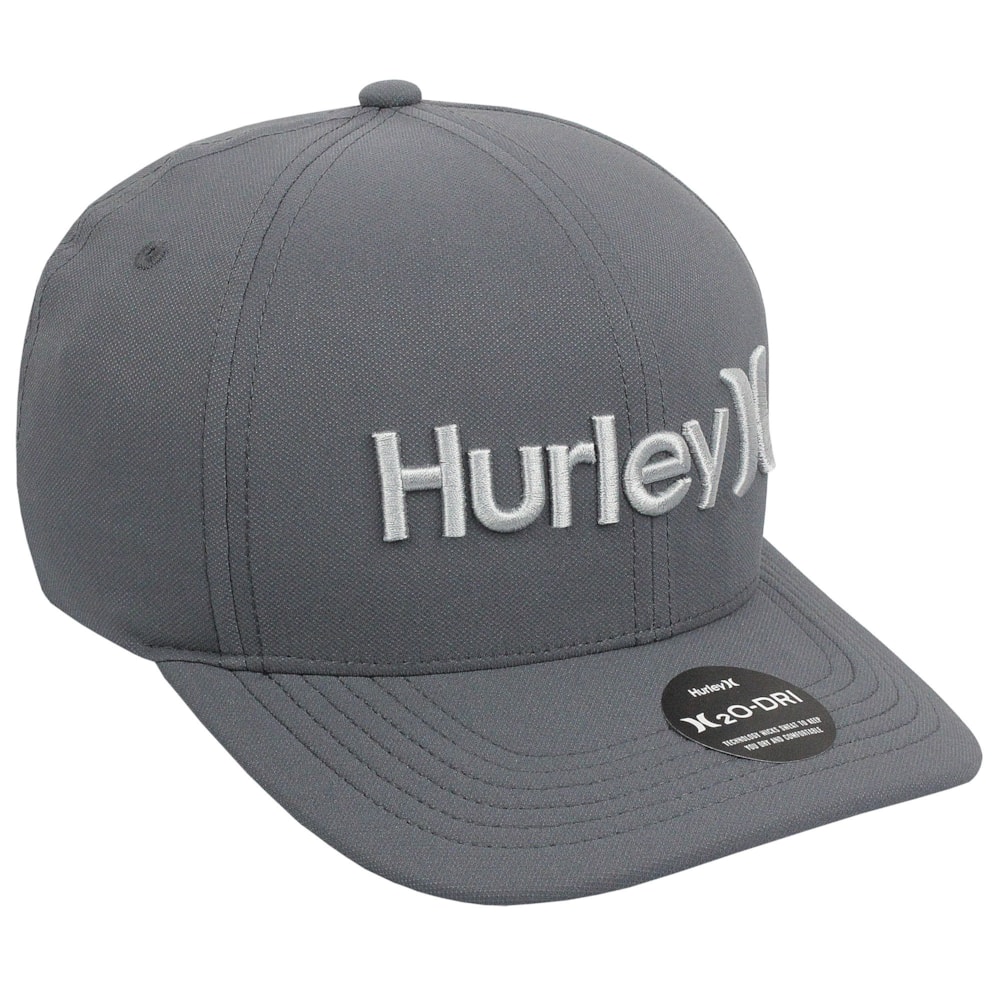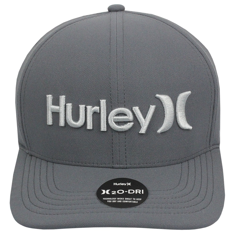 O Boné Hurley One & Only Cinza é produzido com tecido Hurley H2O-Dri, que absorve o suor para mantê-lo seco e confortável durante todo o dia