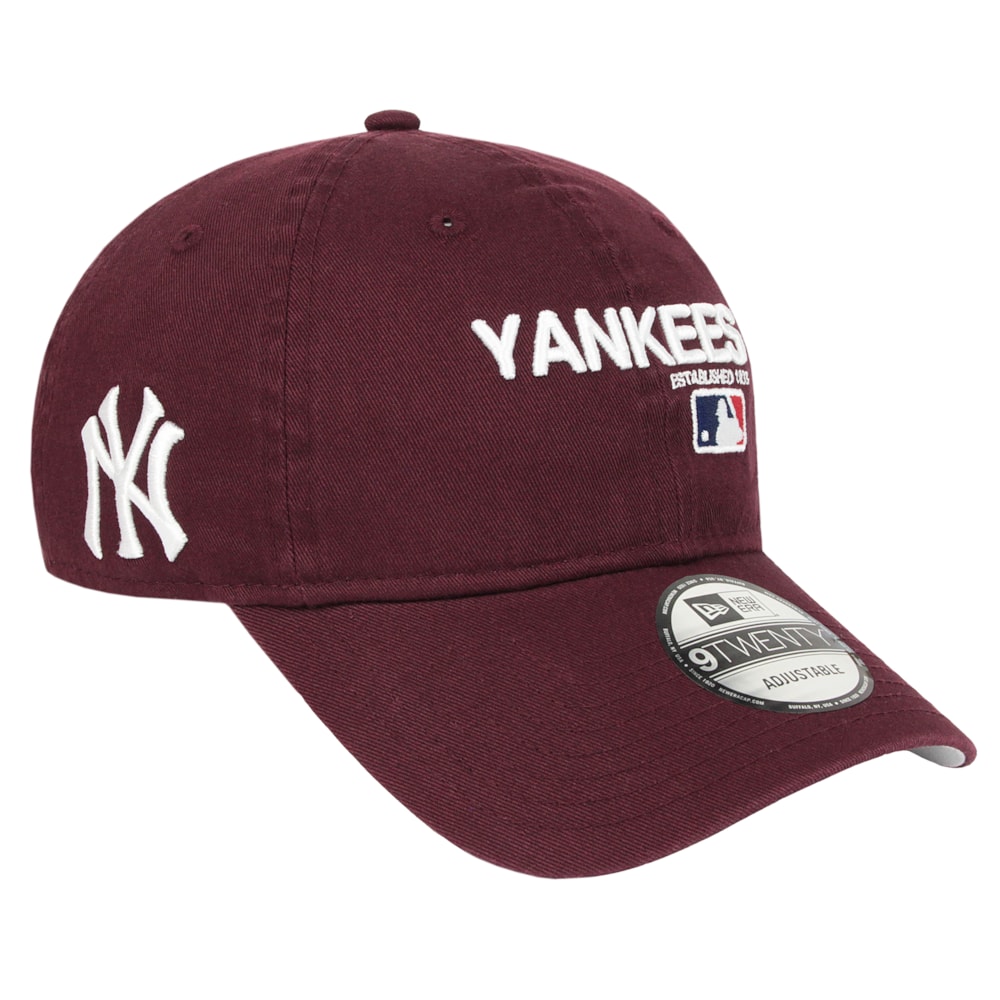 O Boné New Era 9Twenty Destroyed MLB New York Yankees Strapback Wine é produzido em tecido 100% Algodao. Logo NY Yankees bordado no painel frontal e lateral. Tamanho único ajustável com circunferência entre 55,8 e 60,6cm.
