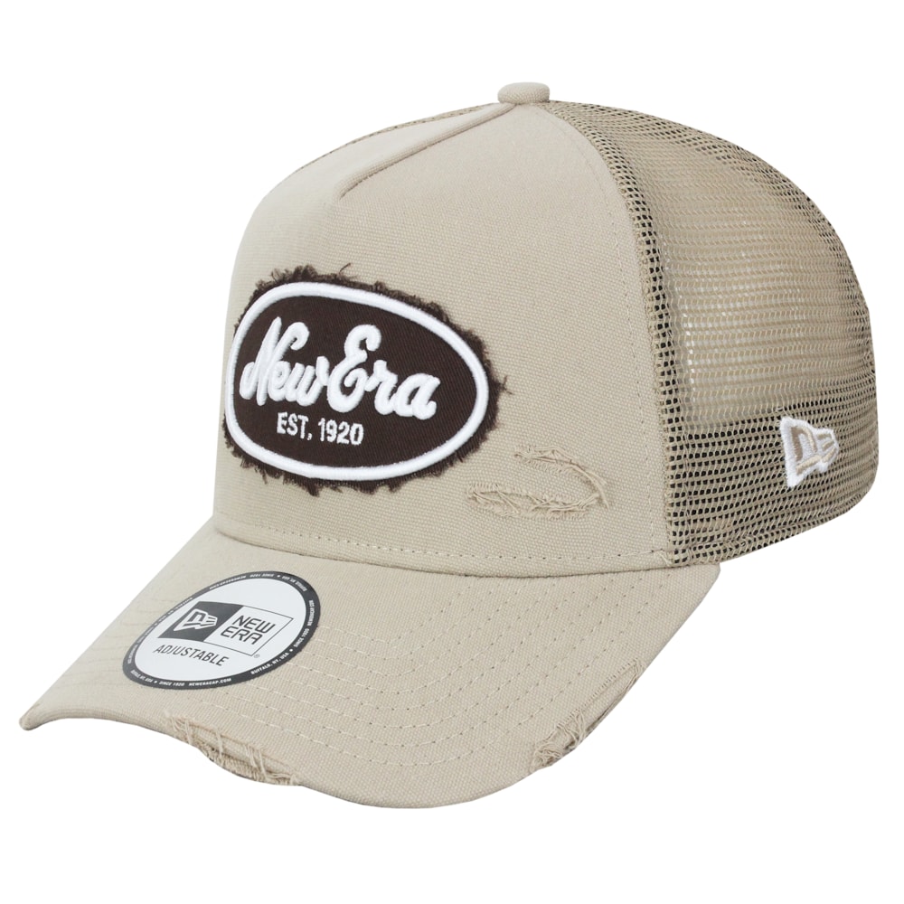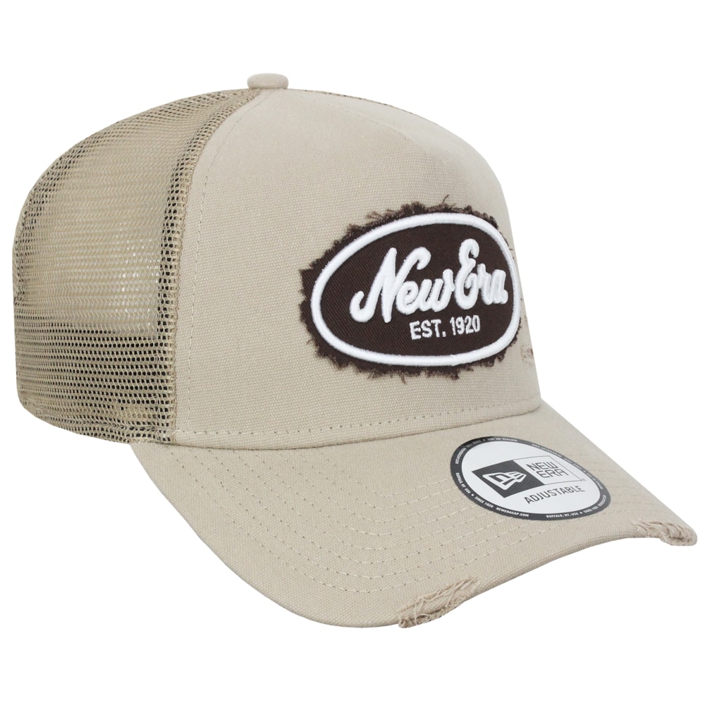Boné New Era Canvas Distress Trucker Beige Importado