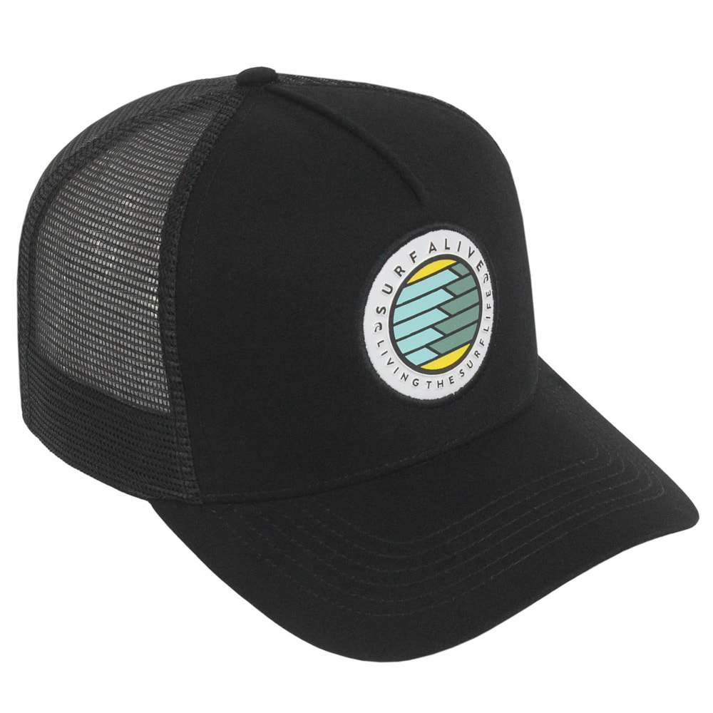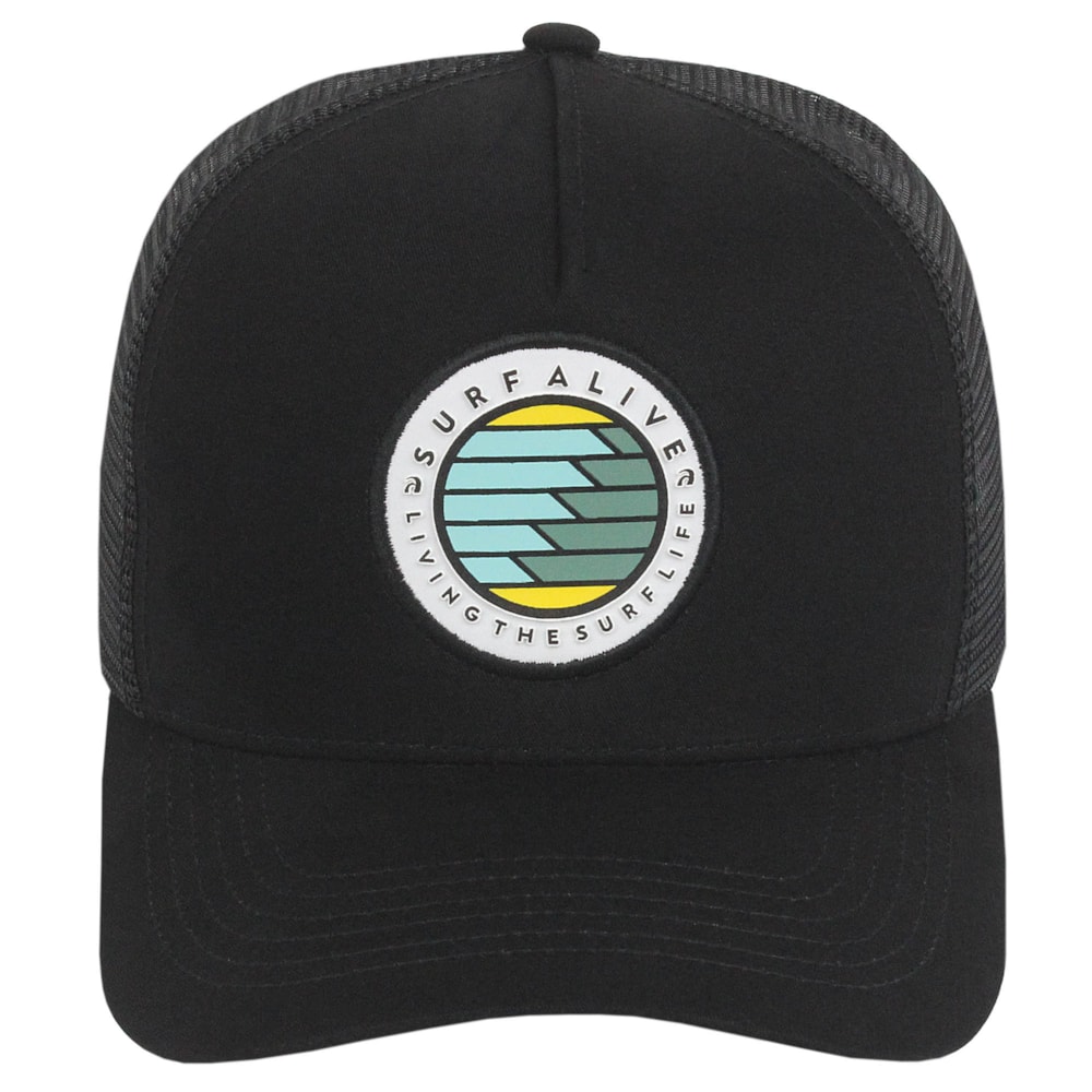 O Boné Surf Alive Trucker Waves Preto tem o painel frontal produzido em Algodão, já a tela traseira é produzida em Poliéster. Patch exclusivo Surf Alive Waves bordado no painel frontal. Tamanho único com fechamento snapback com diâmetro entre 55,8 e 60,6cm