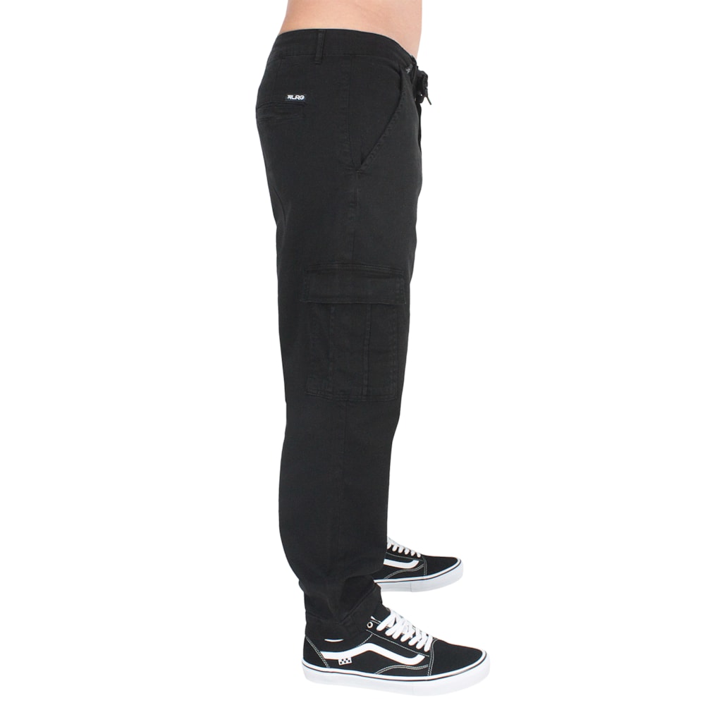 A Calça Cargo LRG Twill Tress Preta é produzida em sarja 98% Algodão 02% Elastano. Corte cargo com bolsos laterias. Logo LRG bordado no bolso. Cós com fechamento em botão
