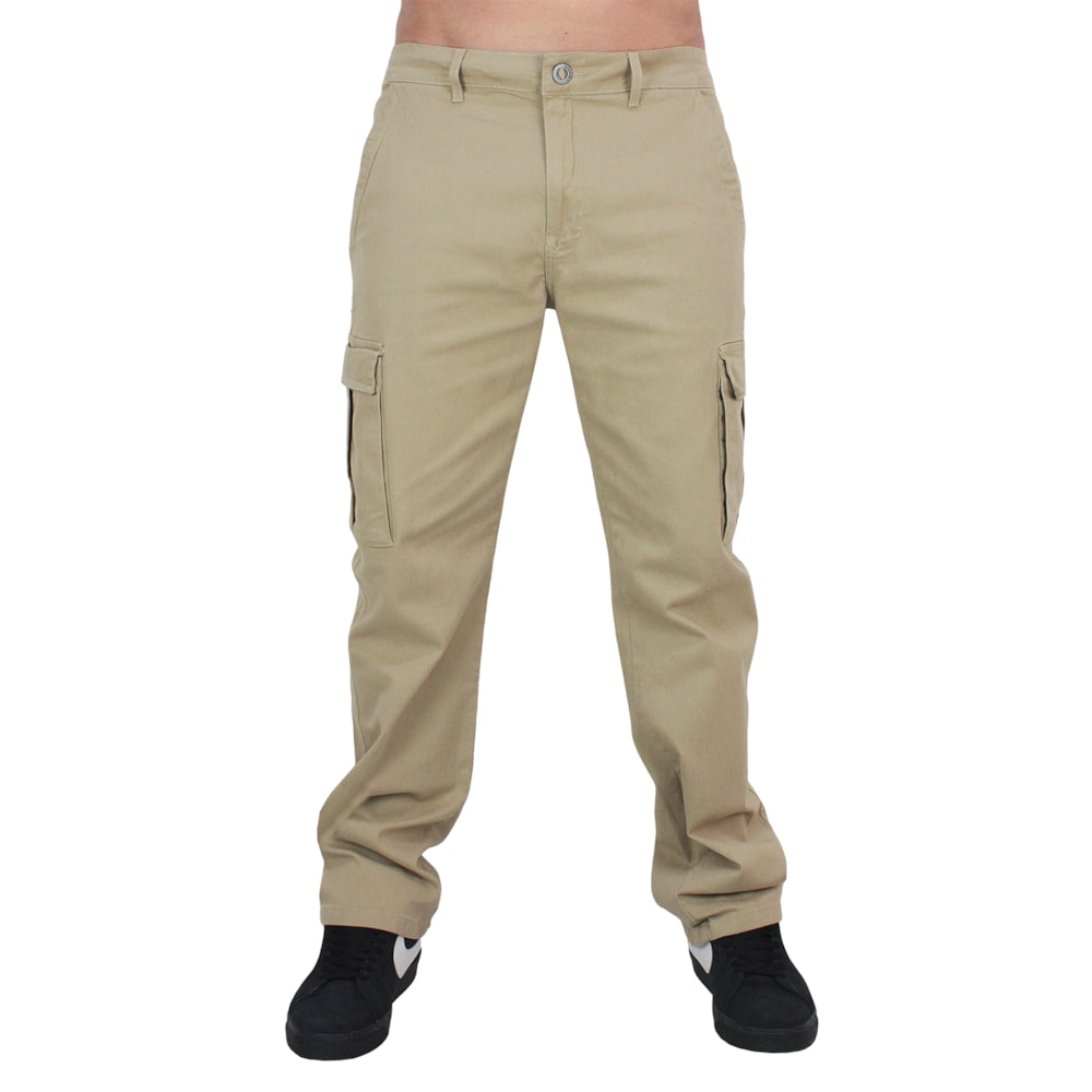 A Calça Cargo Volcom Stranger Kaki é produzida em sarja 97% Algodão e 03% Elastano. Corte cargo com bolsos laterias. Logo Volcom bordado na perna e etiqueta personalizada no bolso traseiro. Cós com fechamento em botão