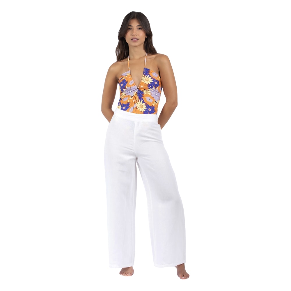 A Calça Rip Curl Premium Surf White foi produzida para oferecer conforto e leveza. Fabricada com tecido Viscose Slub Linho 180G, 52% Linho / 42% Viscose . Logo Rip Curl em metal personalizado, zíper traseiro invisível.