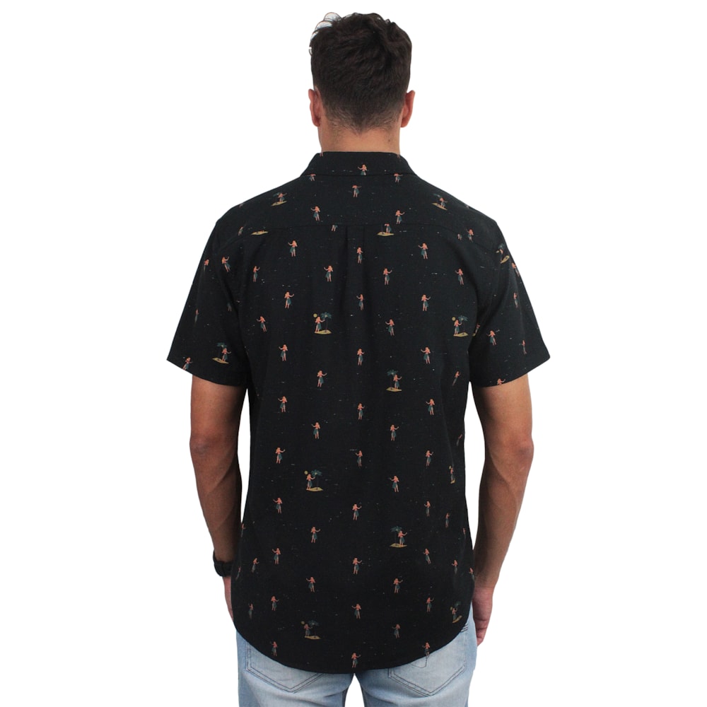 A Camisa Rip Curl New Hula Breach Black é produzida em tecido 1/2 malha 98% Algodão 01% Elastano e 1% Poliéster. Etiqueta Rip Curl personalizada, estampa fullprint.