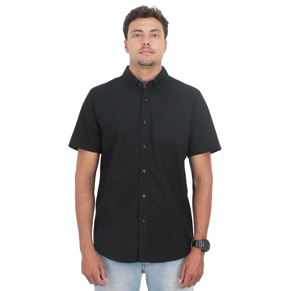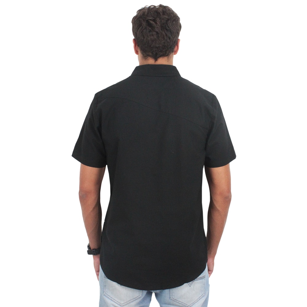 A Camisa Volcom Everett New Black é produzida em tecido 1/2 malha 53% Algodão, 44% Poliéster e 03% Elastano. Logo Volcom Stone bordado no bolso, fechamento em botão.