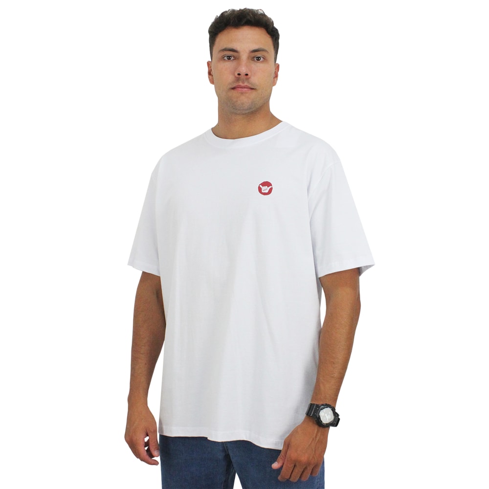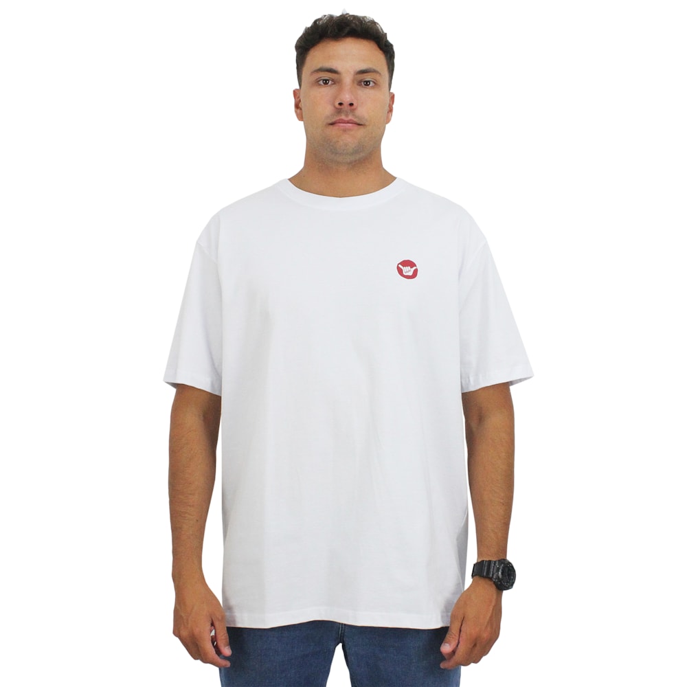 A Camiseta Extra Grande Hang Loose Aloha White é produzida em tecido 1/2 malha 100% Algodão. Estampa exclusiva Hang Loose em silk no peito e nas costas.
