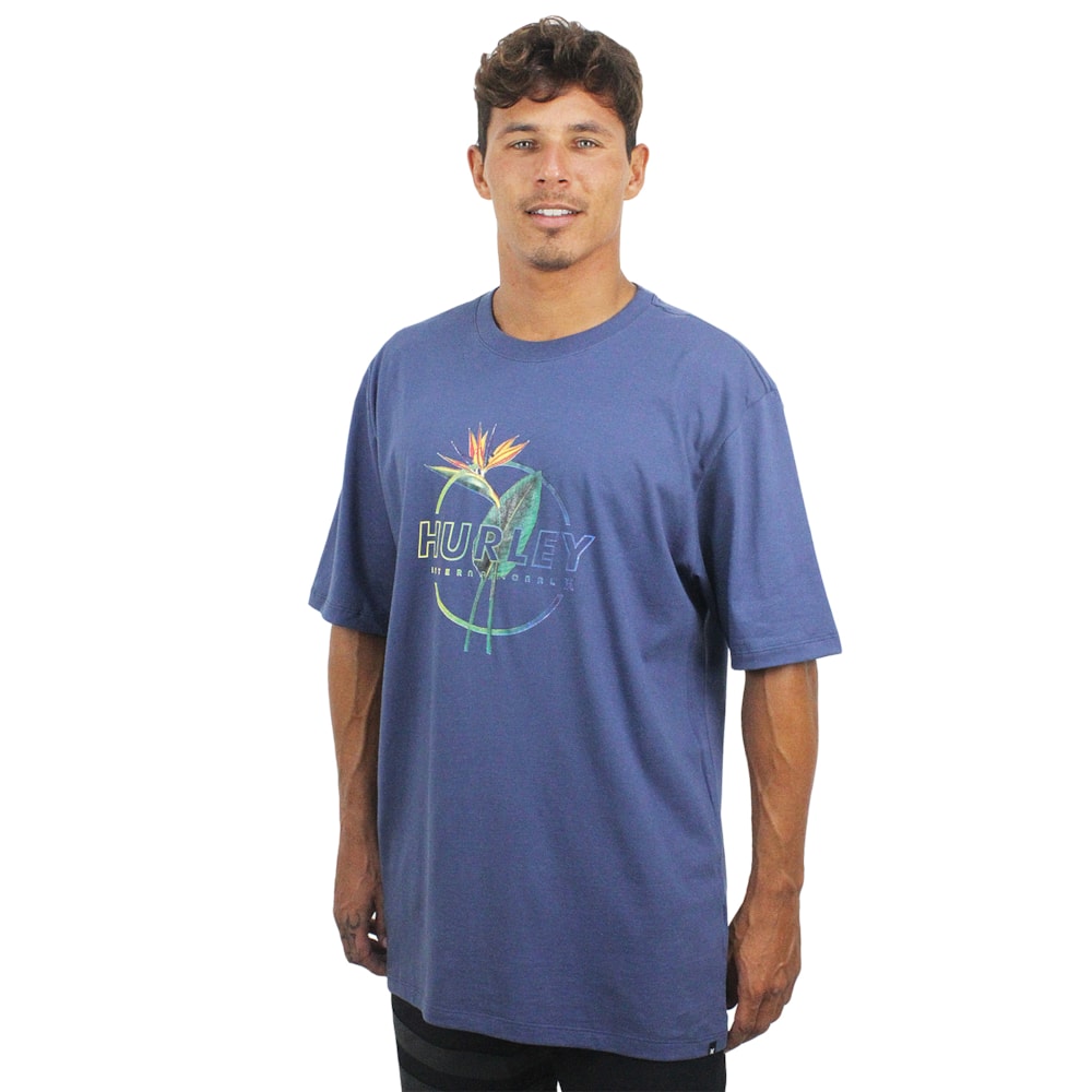 Nome: Camiseta Extra Grande Hurley Flower Blue