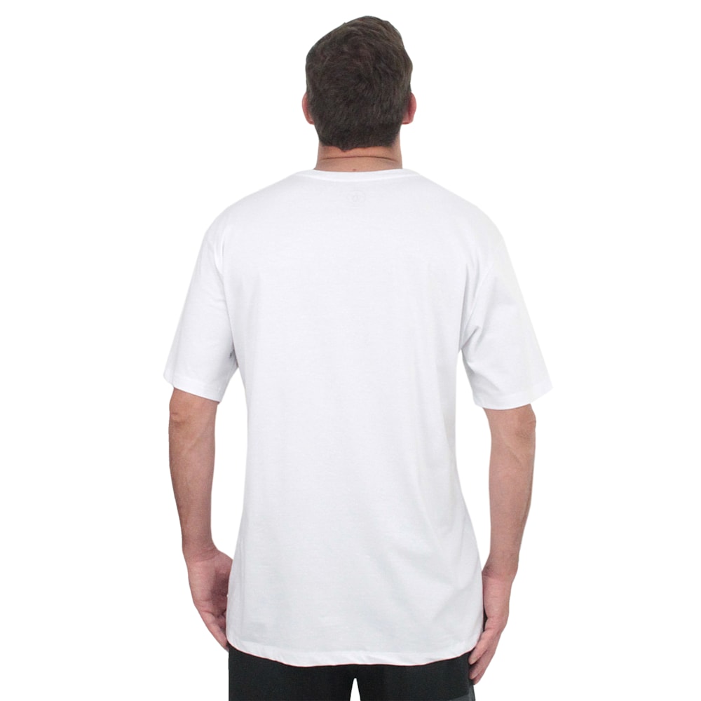 A Camiseta Extra Grande Volcom Sinkem Branca é produzida em tecido 1/2 malha, 100% Algodão. Estampa exclusiva Volcom em silk sem toque no peito.