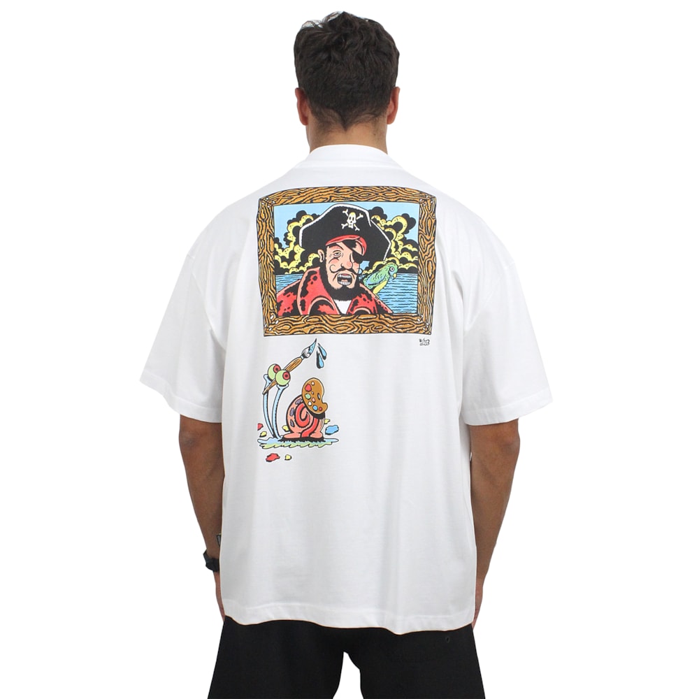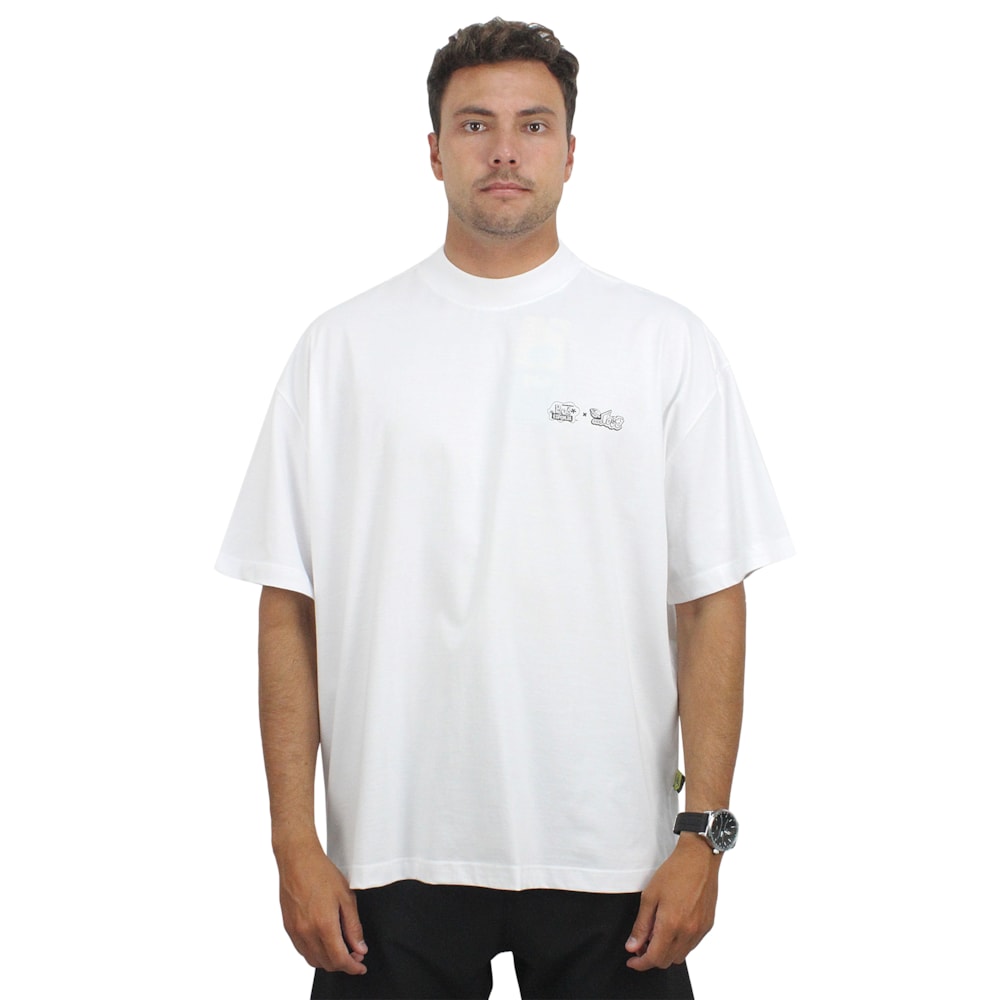 A Camiseta Lost x Bob Esponja Quadrada Gary Artist Boxfit White é produzida em tecido 100% Algodão. Estampa exclusiva Lost X Bob Esponja em silk no peito e nas costas, acabamento com etiqueta personalizada na lateral, gola em ribana de 3cm, modelagem Oversized