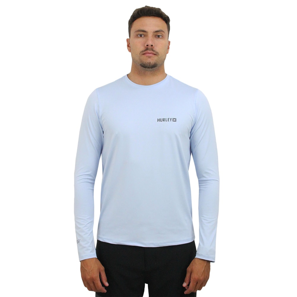 A Camiseta para Surf Hurley Stiker Azul Claro é produzida em uma combinação de poliéster com elastano, conta com proteção UV 50+, tratamento Anti Microbiano e secagem rápida. Estampa exclusiva Hurley Sticker em silk no peito e nas costas, modelagem relaxed.