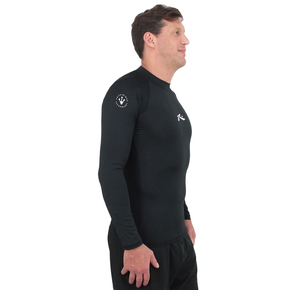 A Camiseta para Surf Rusty Long Surf Manga Longa Black é produzida com tecido Texneo em uma combinação de poliéster com elastano, conta com proteção UV 50+, tratamento Anti Microbiano e secagem rápida. Estampa com o logo Rusty R Dot em silk no peito e nas costas, modelagem competition.