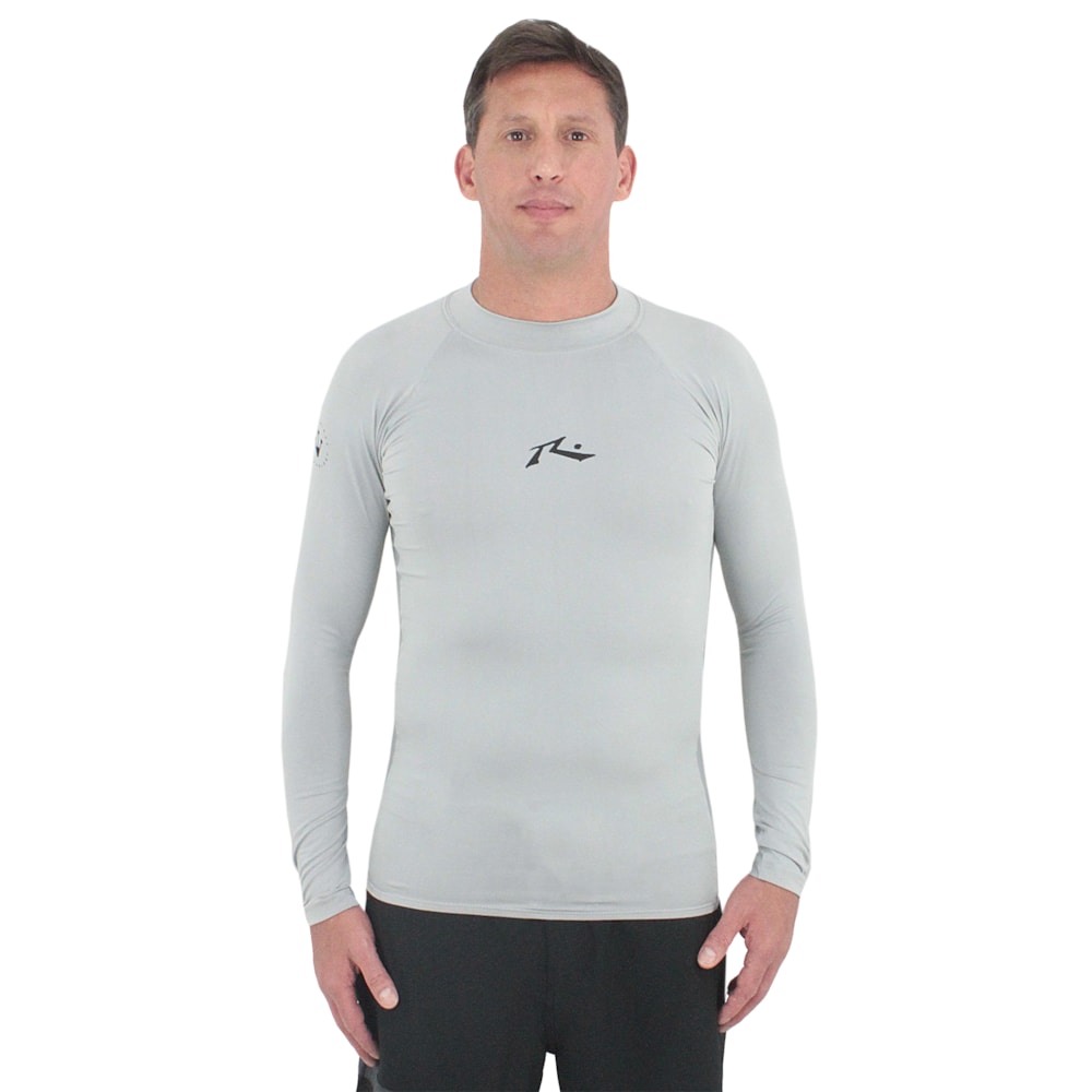 A Camiseta para Surf Rusty Long Surf Manga Longa Grey é produzida com tecido Texneo em uma combinação de poliéster com elastano, conta com proteção UV 50+, tratamento Anti Microbiano e secagem rápida. Estampa com o logo Rusty R Dot em silk no peito e nas costas, modelagem competition.