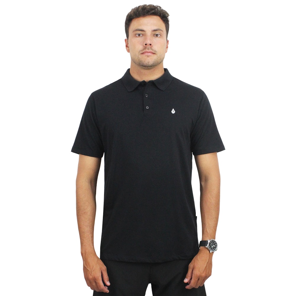 Nome: Camiseta Polo Volcom Classic Stone Preta