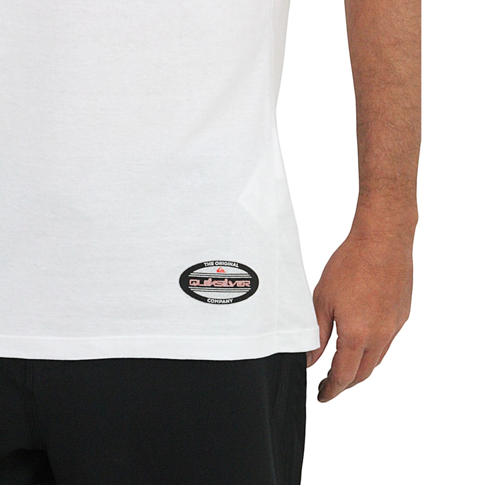 A Camiseta Quiksilver Omni Chrome Line White é produzida com tecido 1/2 malha 100% Algodão. Estampa exclusiva Quiksilver em silk em alto relevo com acabamento metalizado no peito e silk personalizado na barra.