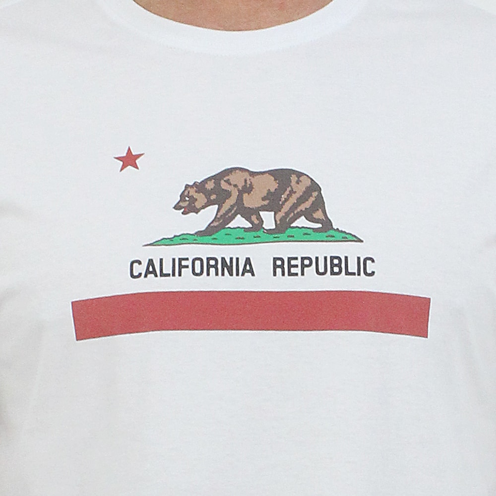 A Camiseta Surf Alive California Republic Branca é produzida com tecido 1/2 malha 100% Algodão. Estampa California State em silk sem toque no peito.