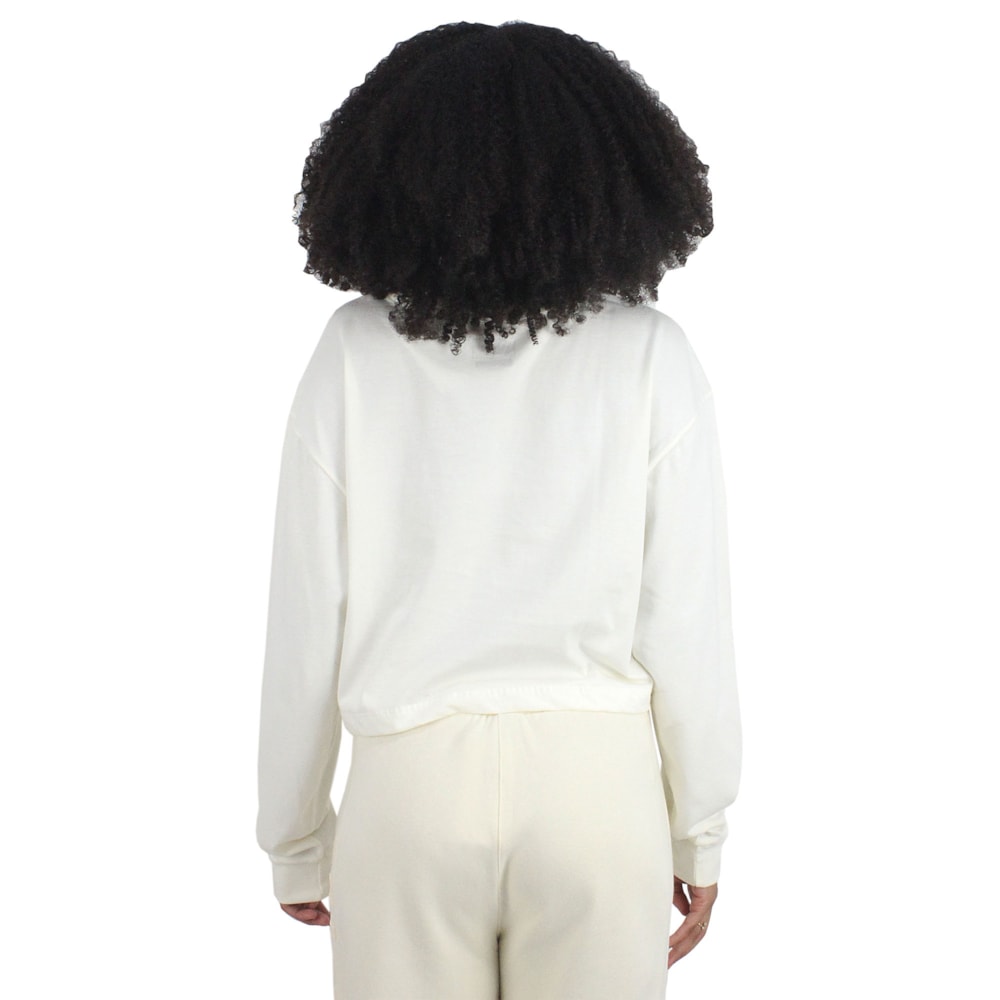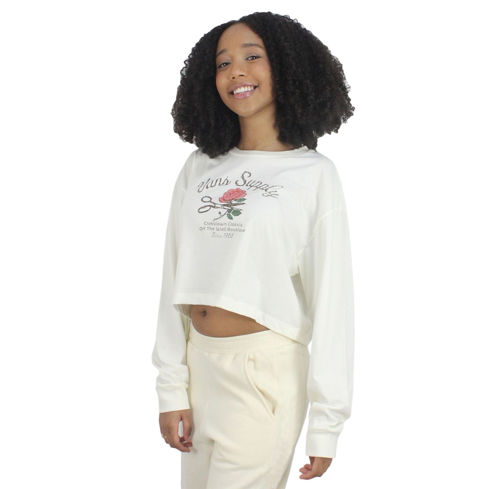 A Camiseta Vans Supply Boutique Marshmallow é produzida em tecido 1/2 malha 100% algodão com modelagem Cropped manga longa, estampa exclusiva Vans em silk no peito. Etiqueta Vans personalizada aplicada na costura lateral.