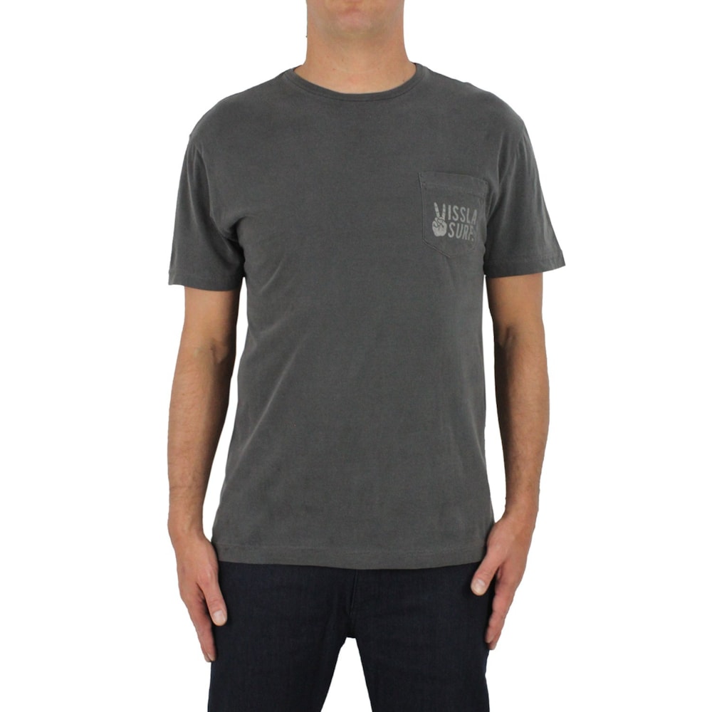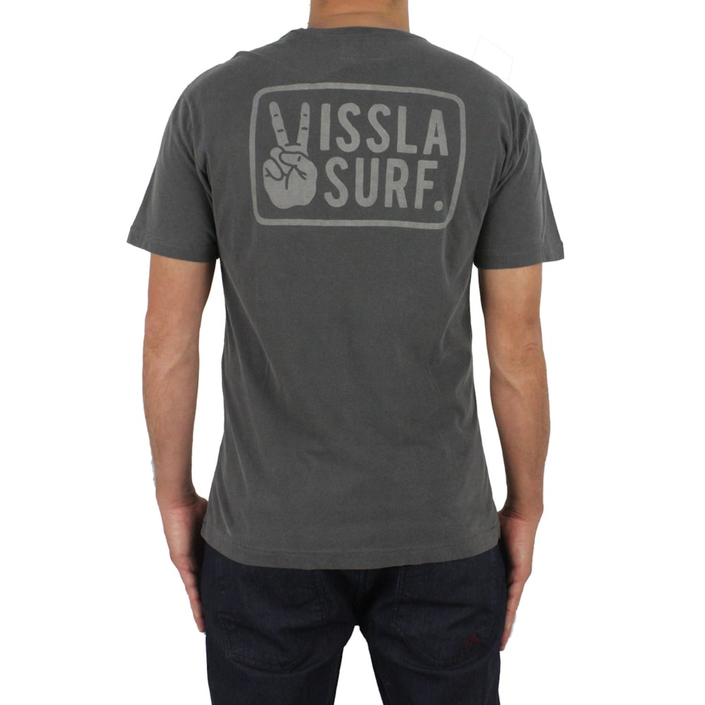 A Camiseta Vissla Peacesla Phantom é produzida com modelagem Slim fit Tecido meia malha 40/1 100% Algodão Lavagem Stonada Bolso frontal com silk sem toque Cobre gola e etiquetas personalizadas Vissla