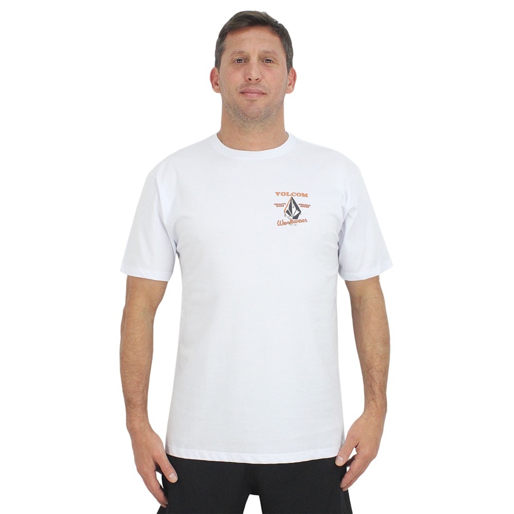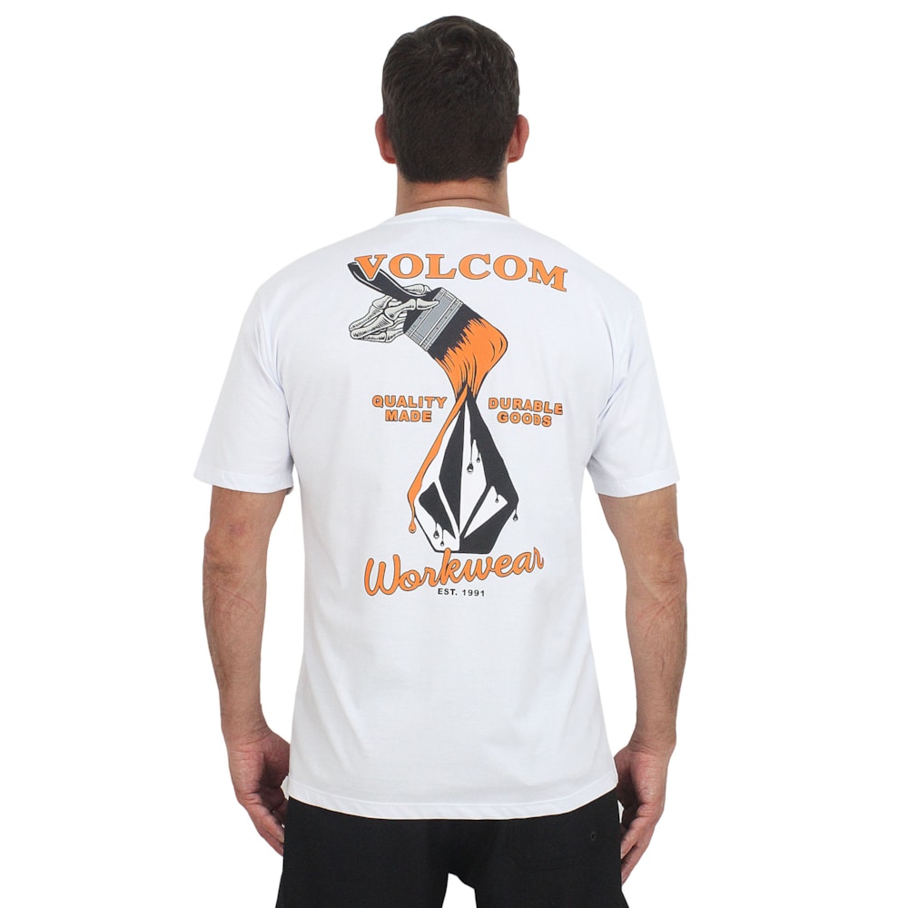 A Camiseta Volcom Enamel Branca é produzida em tecido 1/2 malha, 100% Algodão. Estampa exclusiva Volcom em silk sem toque no peito e nas costas, modelagem regular.