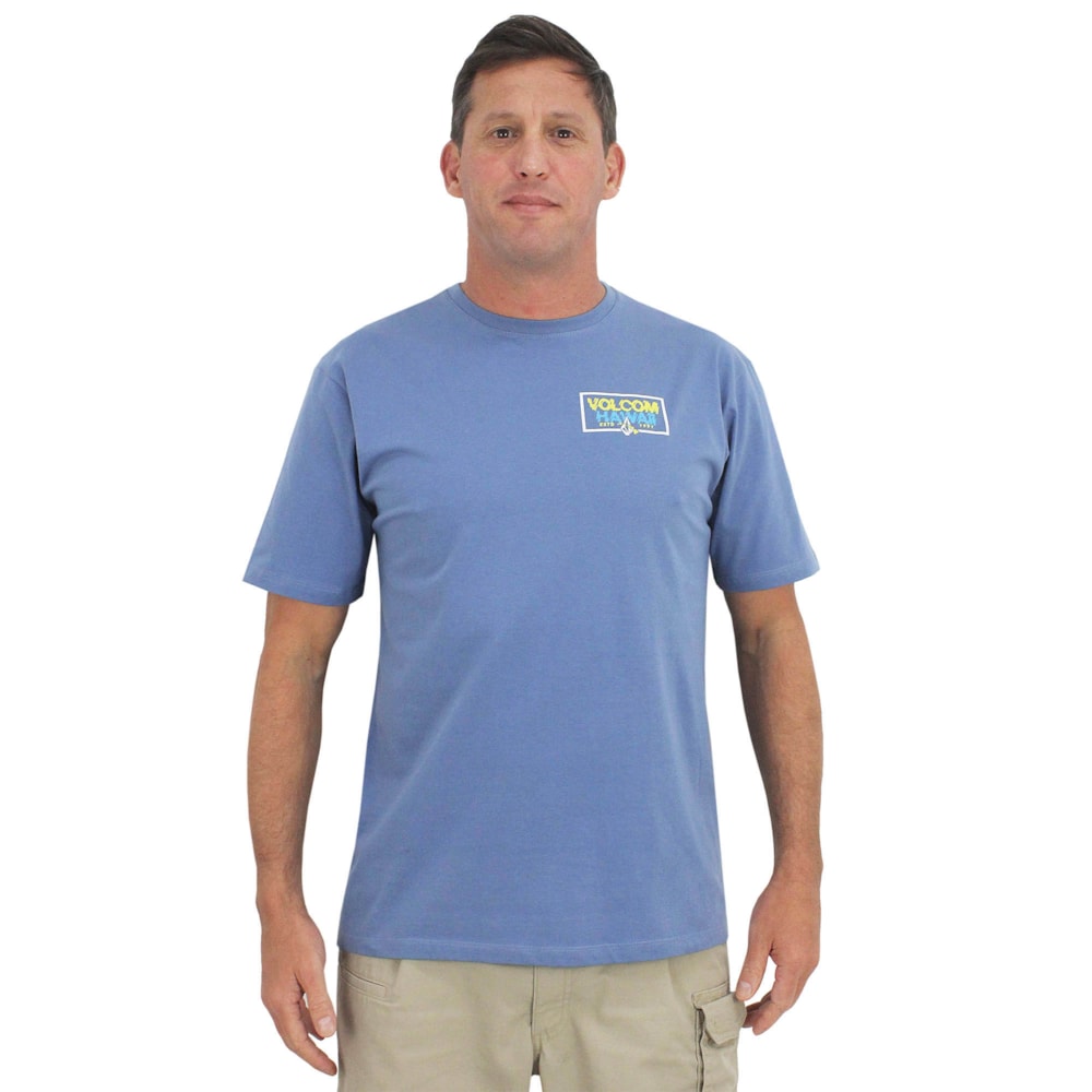 A Camiseta Volcom Fuzer Azul é produzida em tecido 1/2 malha, 100% Algodão. Estampa exclusiva Volcom em silk sem toque no peito e nas costas.