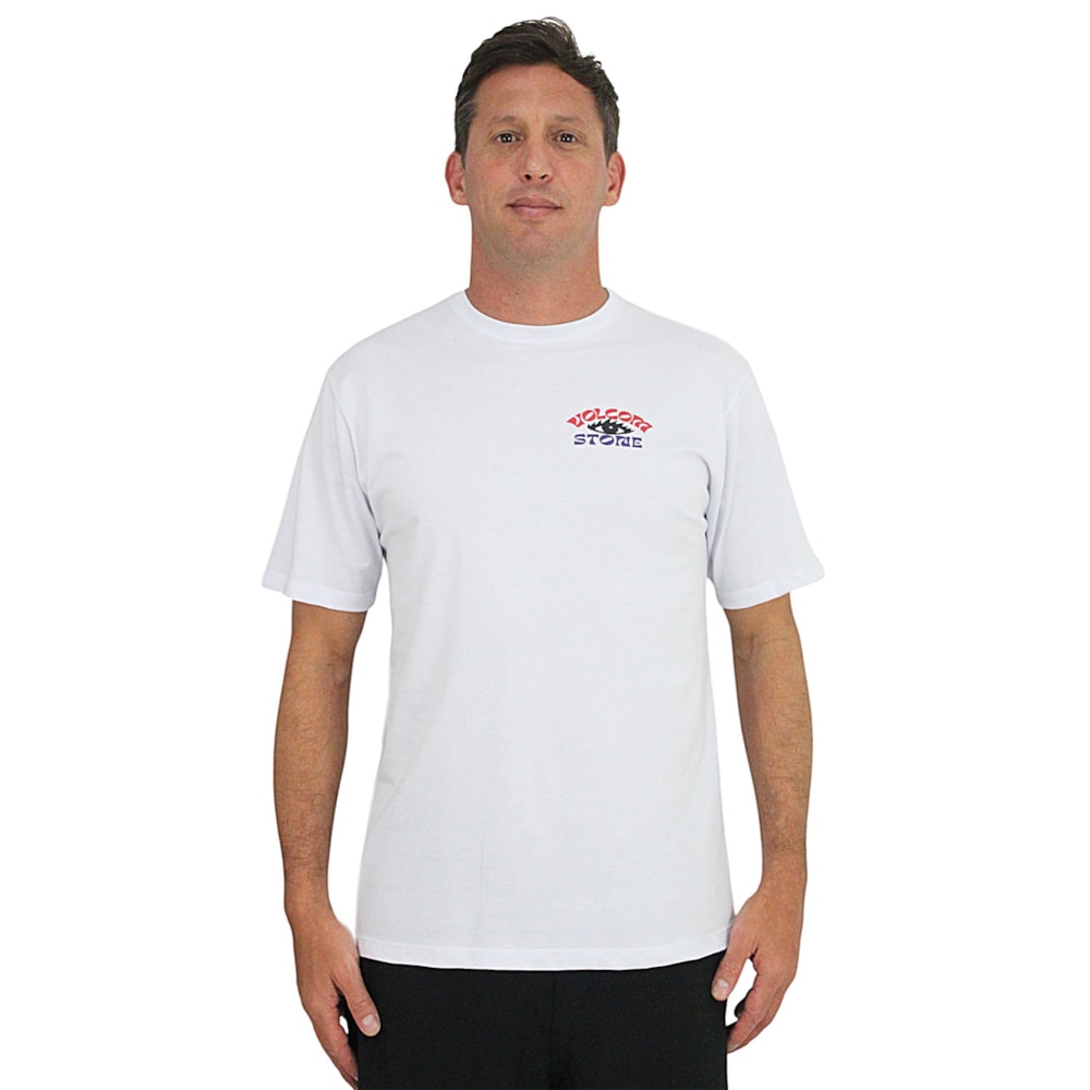 A Camiseta Volcom Visionary White é produzida em tecido 1/2 malha, 100% Algodão. Estampa exclusiva Volcom em silk sem toque no peito e nas costas.