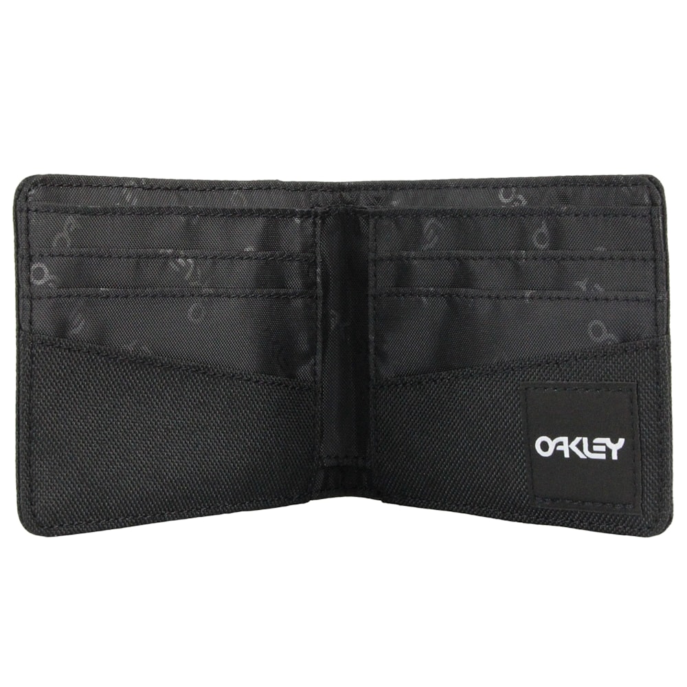 A Carteira Oakley B1B Bifold Blackout é produzida em tecido 100% Poliéster, conta com 6 compartimentos para cartões, bolso para documentos e compatimento para dinheiro. O tradicional logo Oakley é apresentado em silk e etiqueta personalizada parte interior.