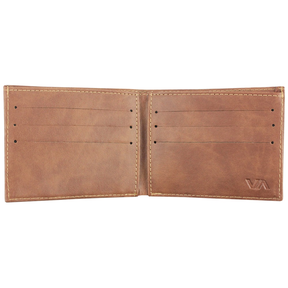 A Carteira RVCA Cedar Bifold II Brown é produzida em couro sintético, conta com 6 compartimentos para cartões, bolso para documentos e compatimento para dinheiro. O tradicional logo RVCA é apresentado em pin metálico.