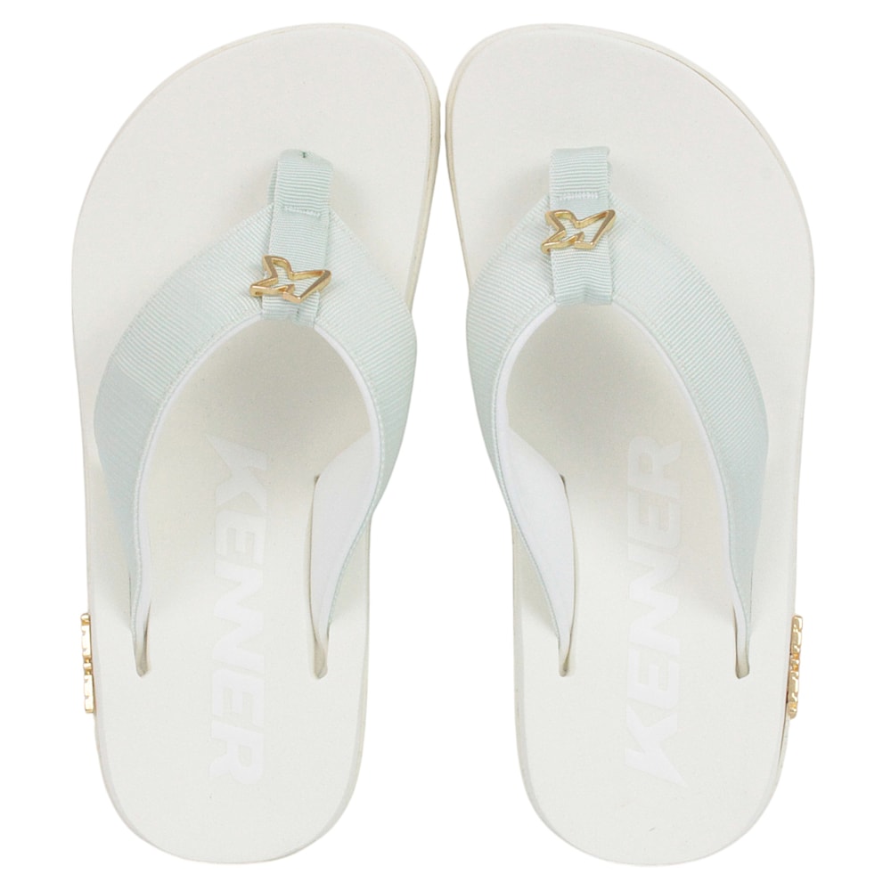 O Chinelo Kenner Kivah All White Branco tem as tiras produzidas em nyloncom revestimento em neoprene. Palmilha de EVA extramacia na cor branca, todos os chinelo Kenner com palmilhas brancas possuem um percentual de RE.USE, de modo que a pigmentação pode sofrer leves alterações no tom. Identificadores com K vazado e pin "KENNER" de metal na lateral do solado no banho dourado