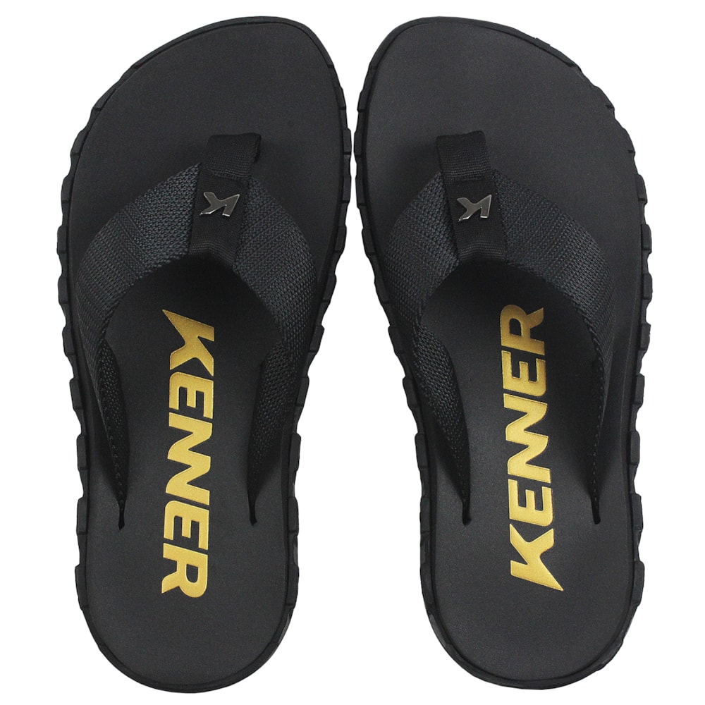 O Chinelo Kenner Megah Preto tem as tiras produzidas com tecnologia Hydro-Off que repele a água. Logo Kenner em pin metálico. Palmilha extramacia em EVA na cor bege. Solado tratorado robusto e antiderrapante, design inspirado em pneus de tratores