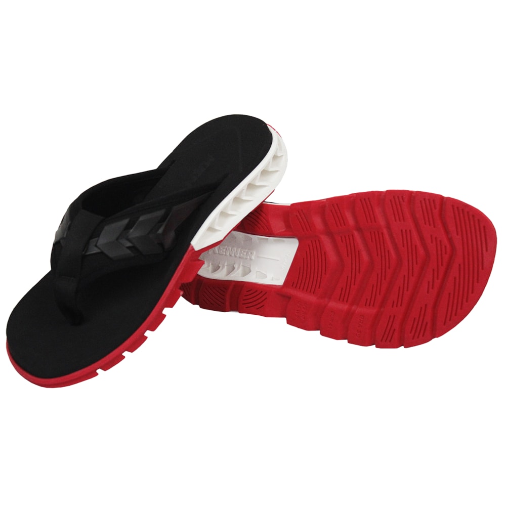 O Chinelo Kenner Rakka Ultra Force Black White Red apresenta o cabedal tridimensional em gel preto com revestimento interno em neoprene preto que evita o atrito com a pele. Palmilha lixada de eva expandido na cor preta, com logo Kenner em laser