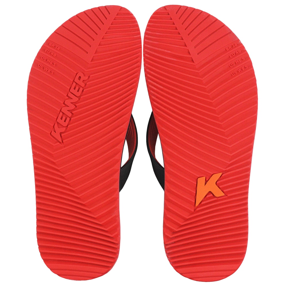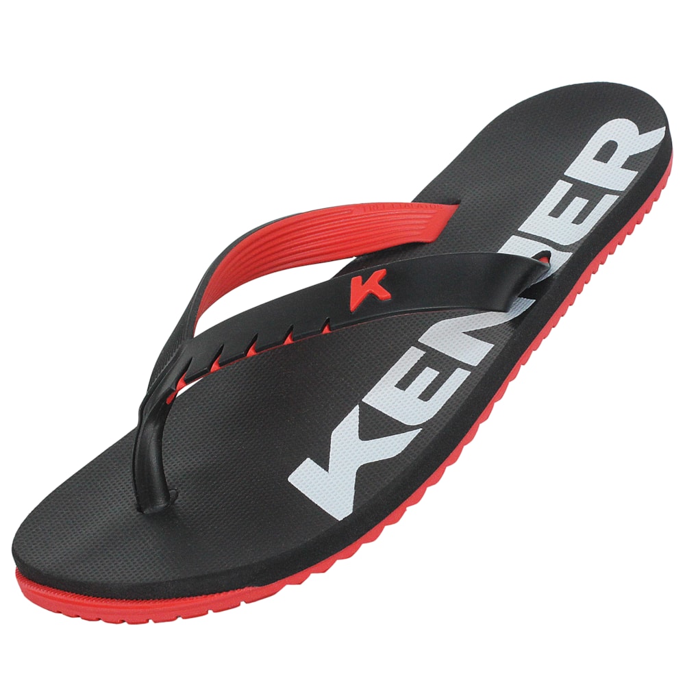 O Chinelo Kenner Red Vermelho Preto tem o cabedal bicolor com linhas anatômicas para maior conforto. Palmilha extra macia impermeável. Entrededos extremamente flexíveis para evitar atrito com a pele. Solado slim levemente tratorado com destaque na parte frontal.