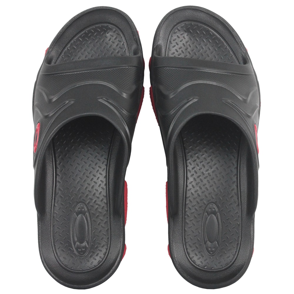 O Chinelo Oakley Titan Slide Black Red é produzida em EVA injetado que garante conforto e leveza, logo Ellipse Oakley contrastante apresentado em PU e solado tratorado para maior estabilidade e tração.