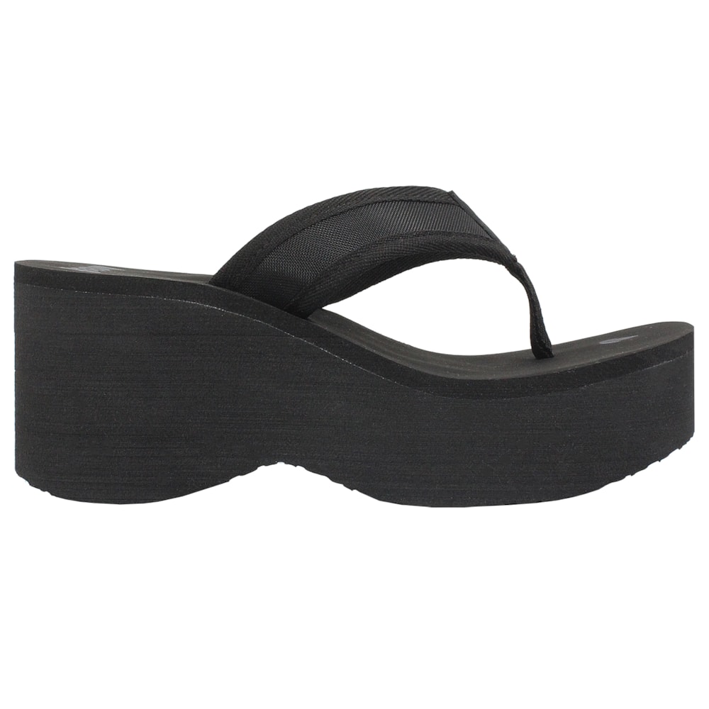 O Chinelo Reef Liv Screen Black tem as tiras produzidas em nylon e poliéster. Construido sobre uma plataforma de EVA com aproximadamente 7cm no calcanhar e 4cm no bico, logo Reef em etiqueta emborrachada na tira e em silk no solado. Palmilha extramacia e solado tratorado para maior segurança e conforto.