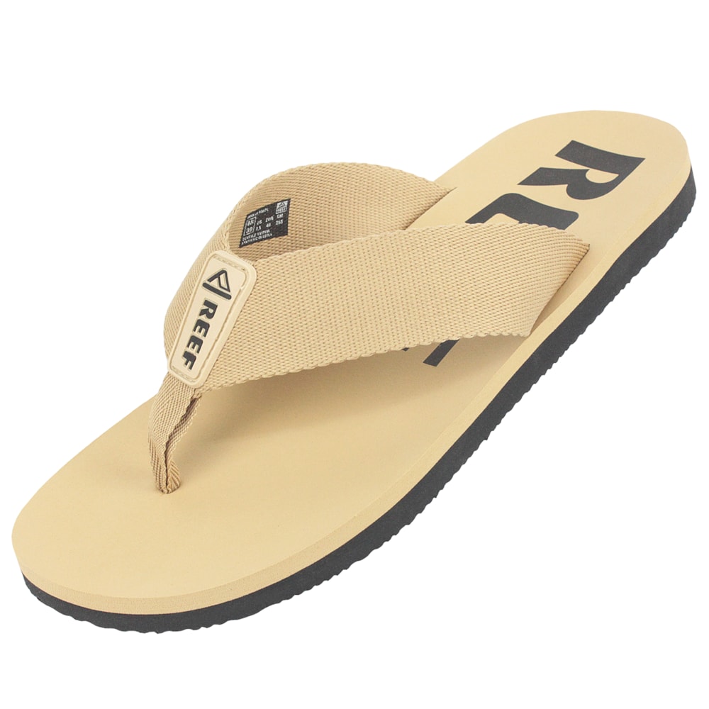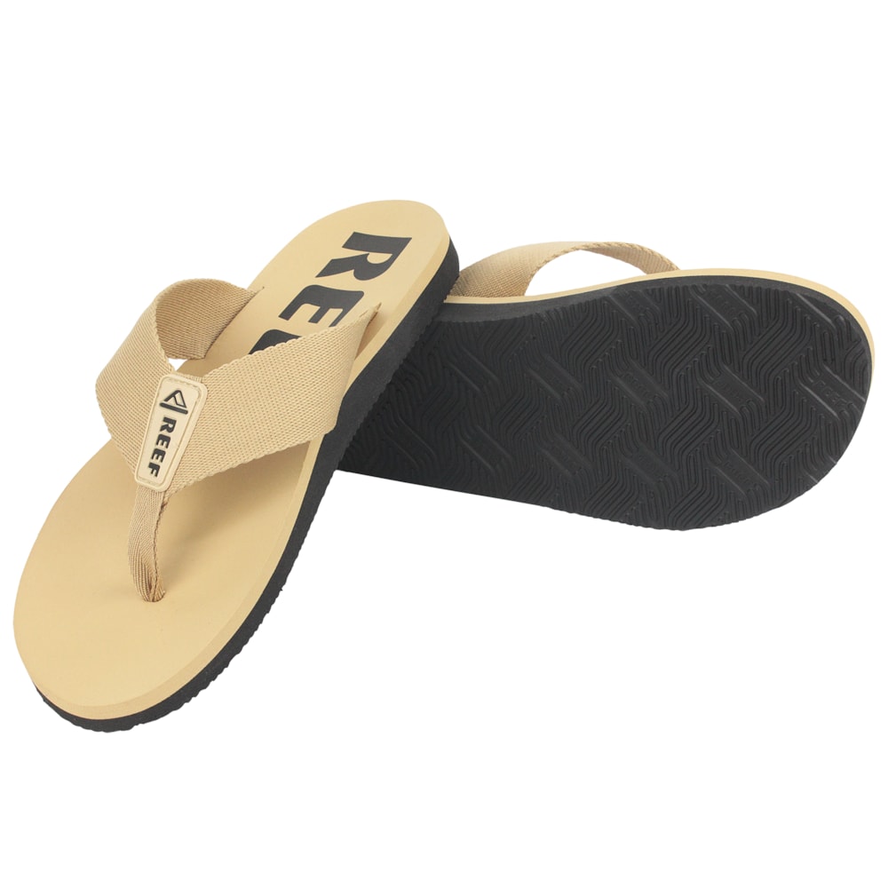 O Chinelo Reef Smoothy Beige tem a palmilha produzida em EVA, tiras em poliéster com detalhe do Logo Reef em etiqueta emborrachada na tira e em silk na palmilha. Solado antiderrapante com o logo Reef em baixo relevo.
