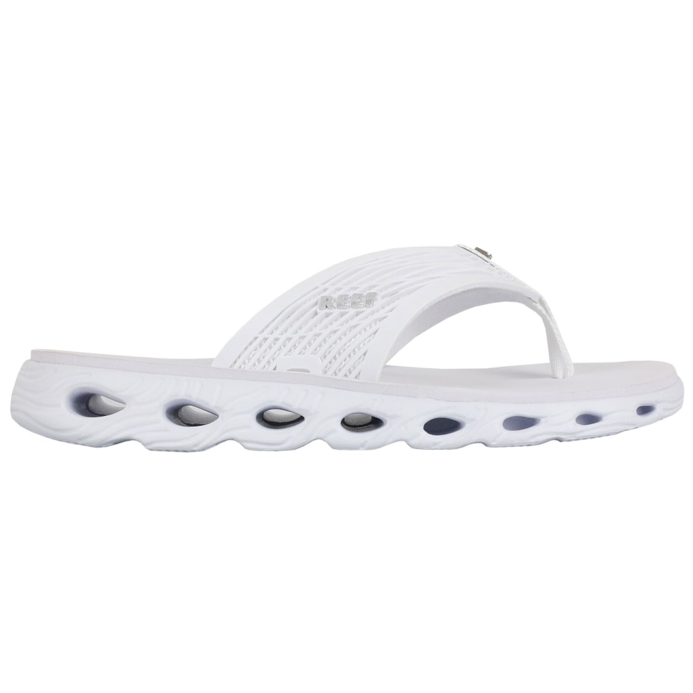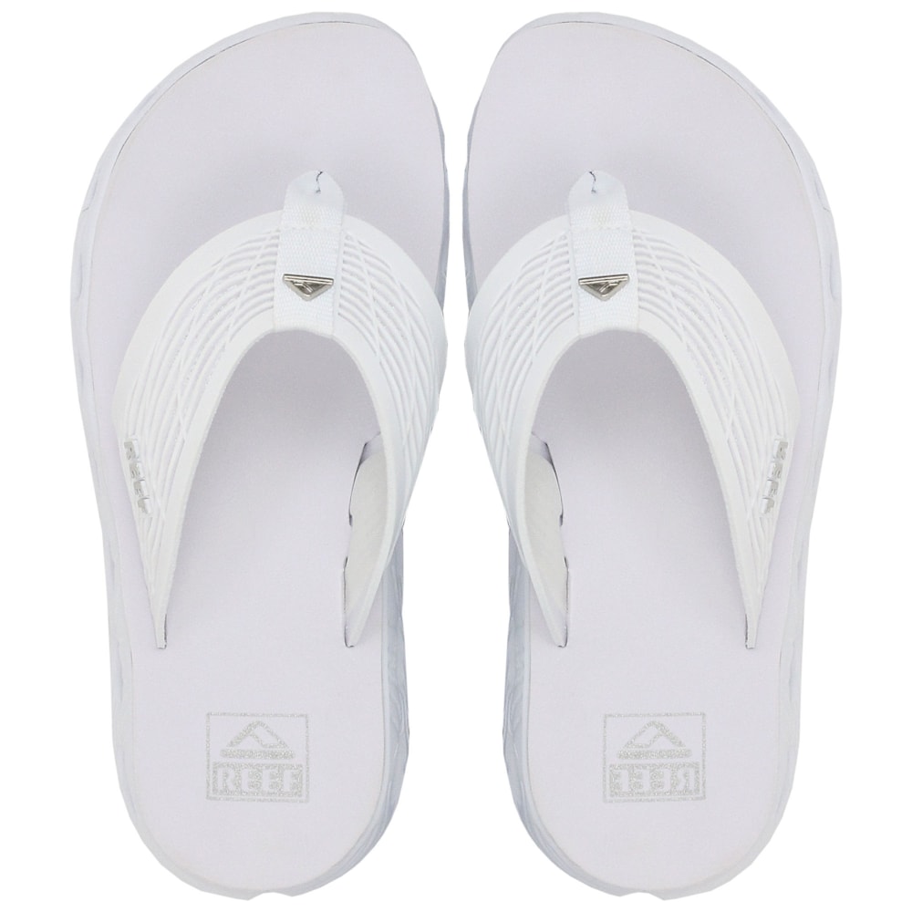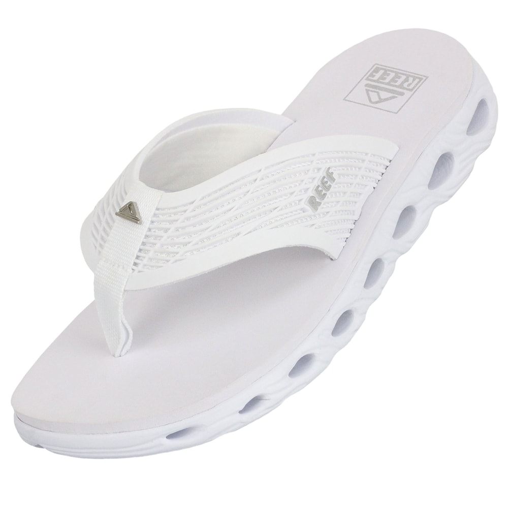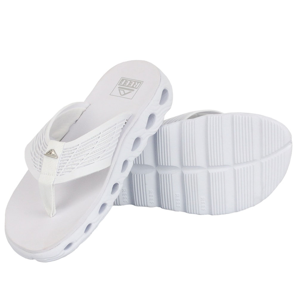 O Chinelo Reef Vision White Silver tem as tiras largas, produzidas em TPU com forração interna que garante conforto e reistência, palmilha produzida em EVA soft touch com 7mm de espessura. Logo Reef apresentado em Pin metálico na tira , solado vazado em EVA injetado que garante leveza e ótima tração.