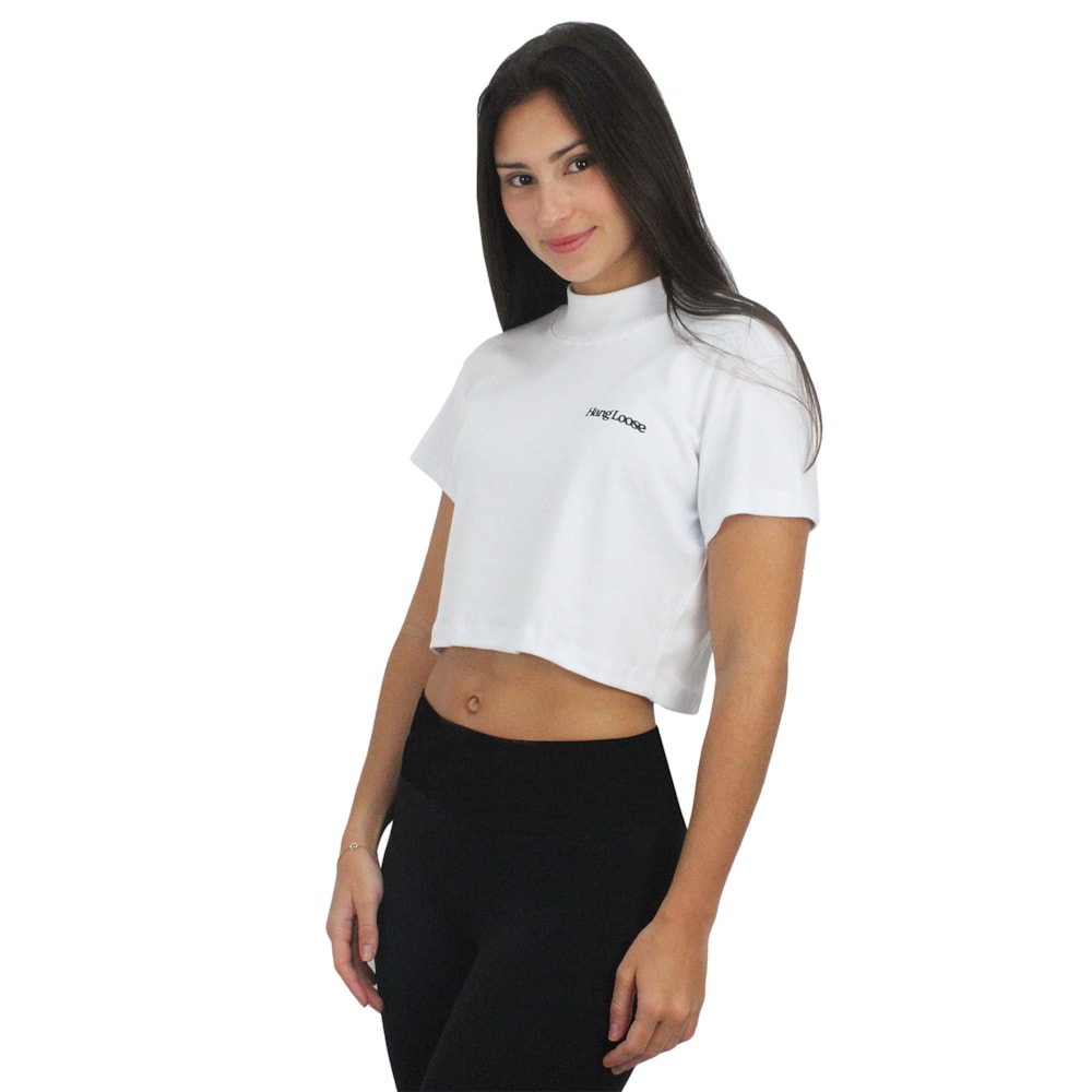 O Cropped Hang Loose Classic White é produzido em tecido canelado 100% Algodão. Estampa exclusiva com o tradicional logo Hang Loose em Silk sem. Acabamento com gola alta ,modelagem Cropped