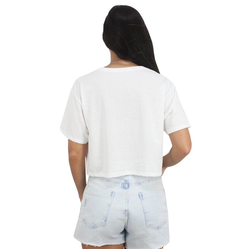 O Cropped Rip Curl Hula Bone é produzido em tecido 1/2 malha 52% Poliéster e 48% Algodão. Estampa exclusiva Rip Curl em Silk no peito. Modelagem Cropped