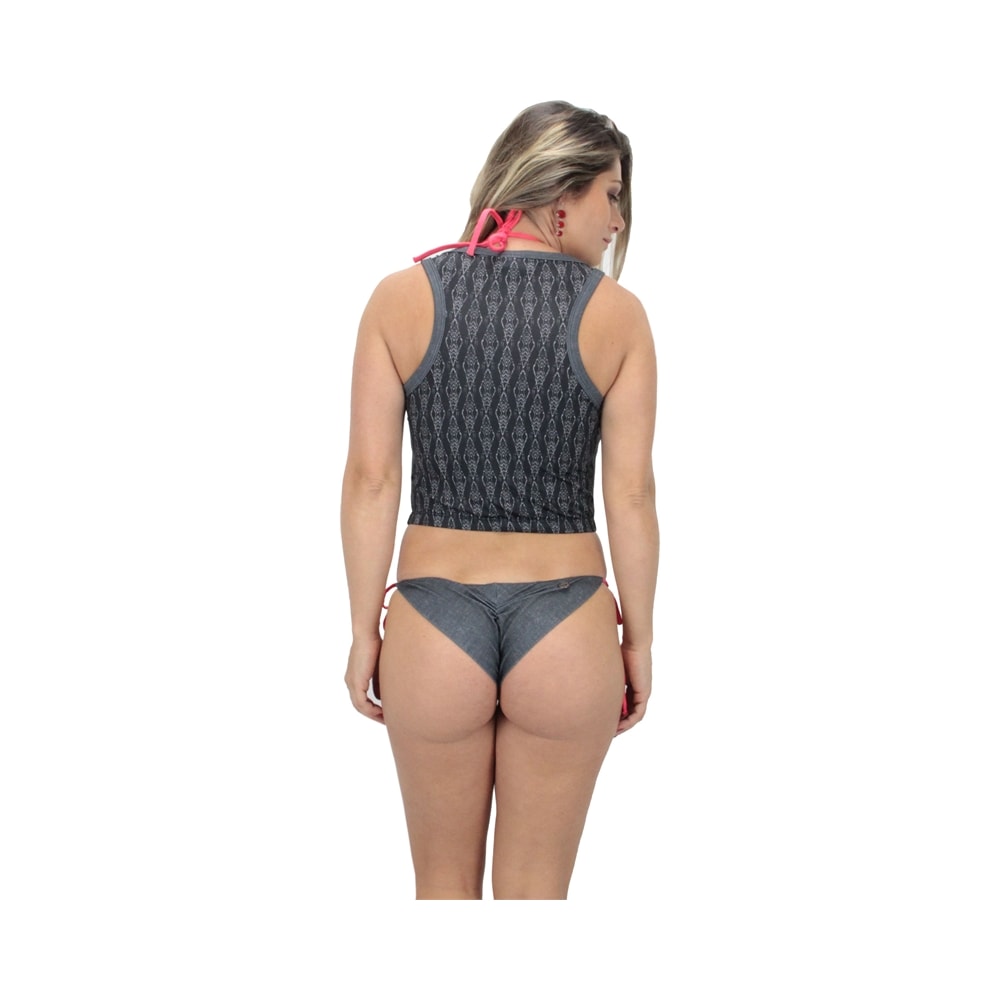 Triquini compostdo por um Cropped e conjunto biquíni cortininha