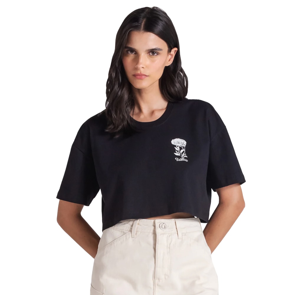 O Cropped Volcom Pitch It To Me Preta é produzido em tecido 100% Algodão. Estampa exclusiva Volcom em Silk no peito e nas costas. Modelagem cropped oversized comcostura do ombro deslocada.