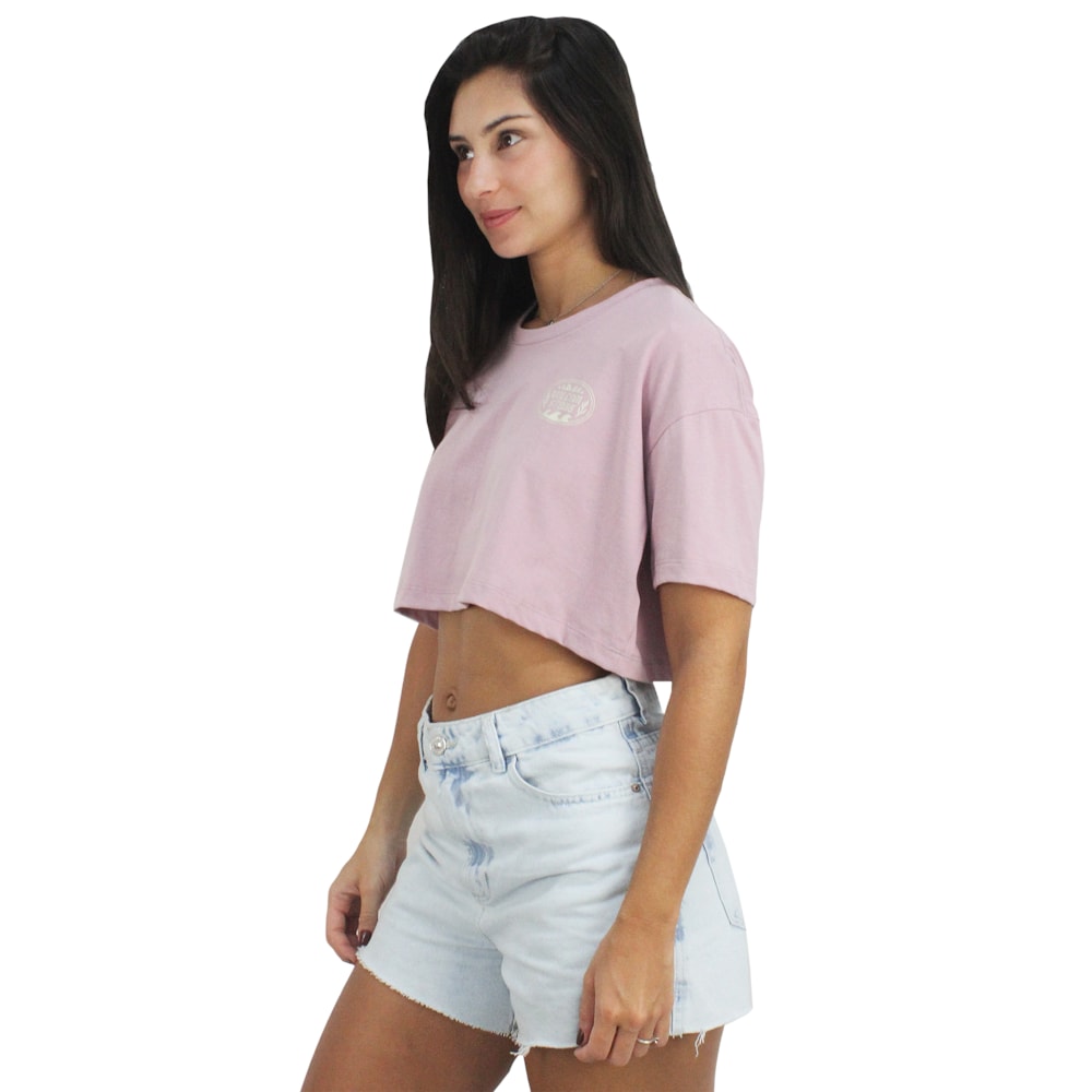 O Cropped Volcom Pocket Dial Rosa é produzido em tecido 1/2 malha 100% Algodão. Estampa exclusiva Volcom em Silk no peito e nas costas. Modelagem Cropped