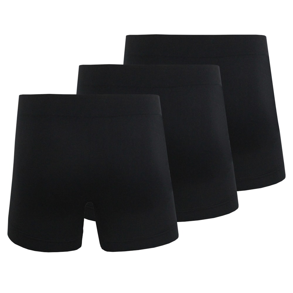 A Cueca Boxer Rip Curl Comfort Kit com 3 Black sem costuras é produzida em tecido 95% Poliamida, 04% Elastano e 01% Poliprolpileno.