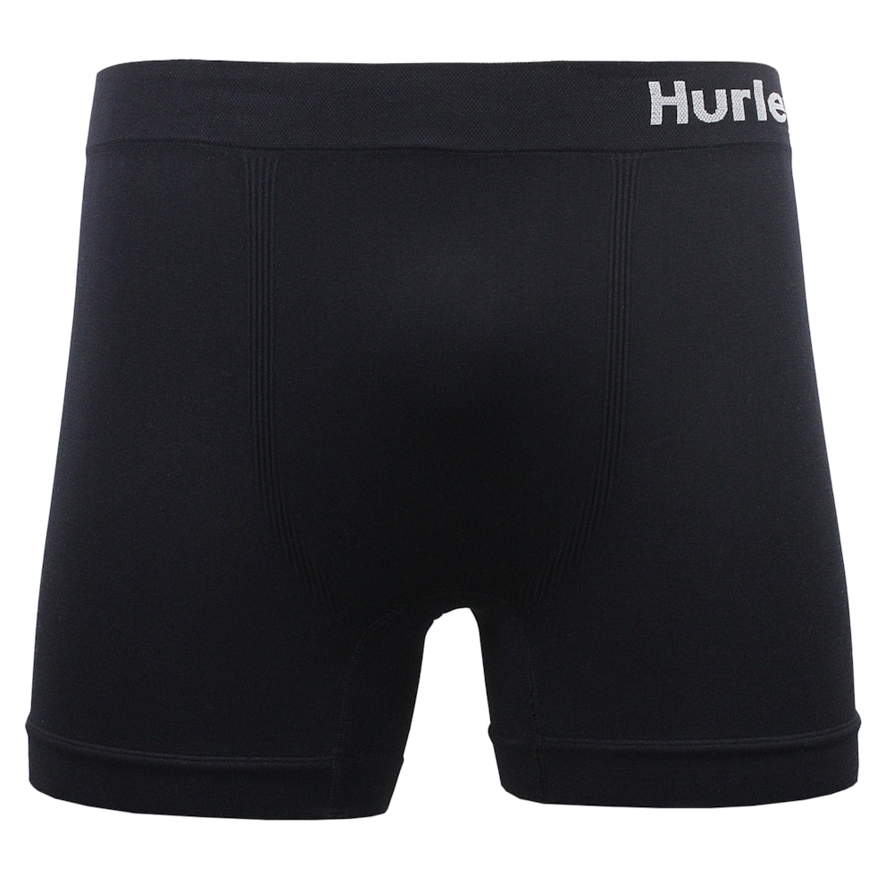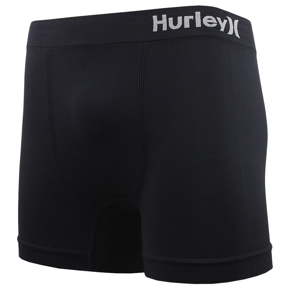 A Cueca Boxer Hurley Seamless Black sem costuras, produzida em tecido 95% Poliamida, 04% Elastano e 01% Poliprolpileno.